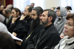 Преподаватель сектоведения Сретенской Духовной академии Роман Михайлович Конь выступил на тему «Православная противосектантская миссия: настоящее и перспективы». Он привел статистику существующих в России религиозных организаций, заострив внимание на неопротестантизме, и дал обзор важнейших направлений противосектантской миссии, где главное – показать отличие сектантских учений от православия и аргументированно доказать истинность православного учения.