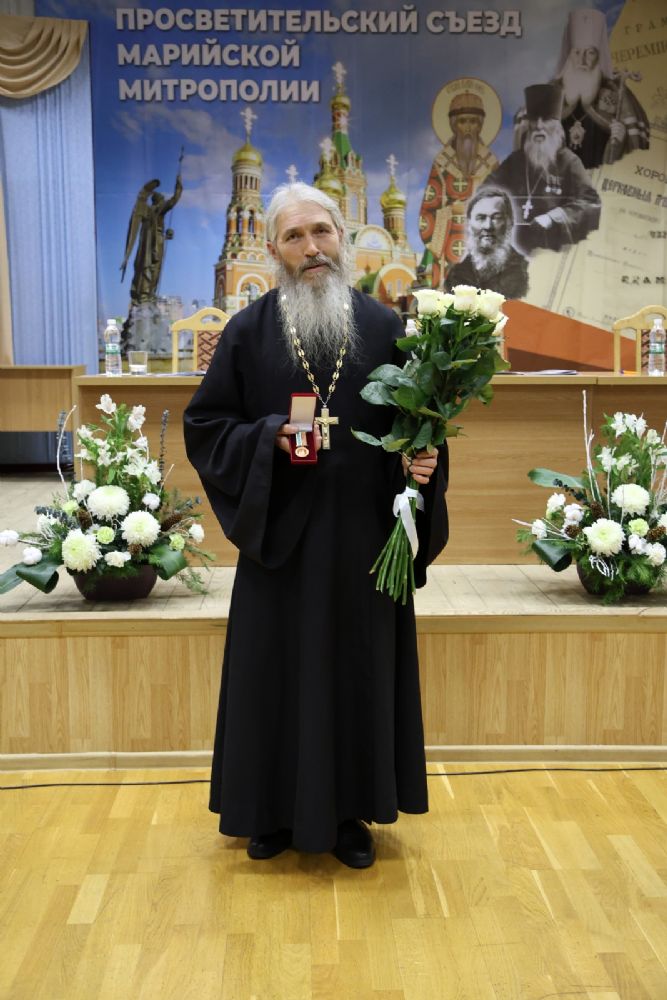 В рамках пленарного заседания митрополит Иоанн вручил награду: за особый вклад в созидание церковной жизни в Йошкар-Олинской епархии медали священномученика Леонида, епископа Марийского, III степени удостоен руководитель Переводческой комиссии Марийской митрополии протоиерей Николай Чузаев.