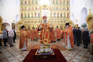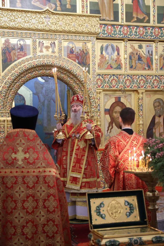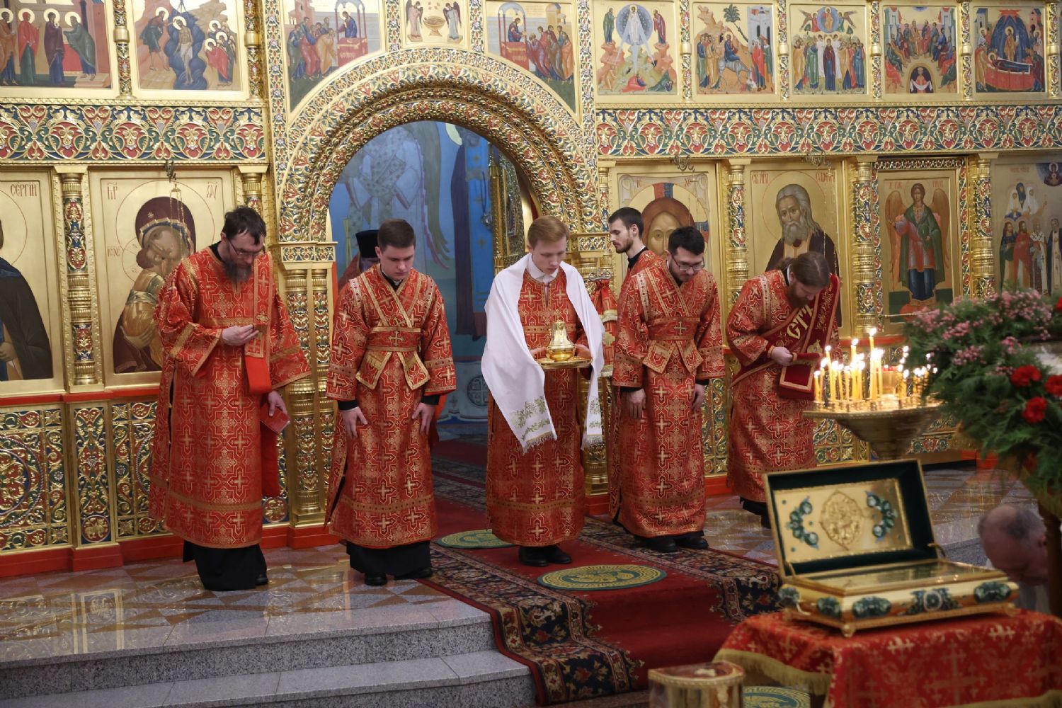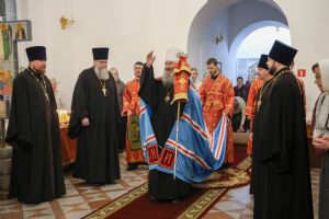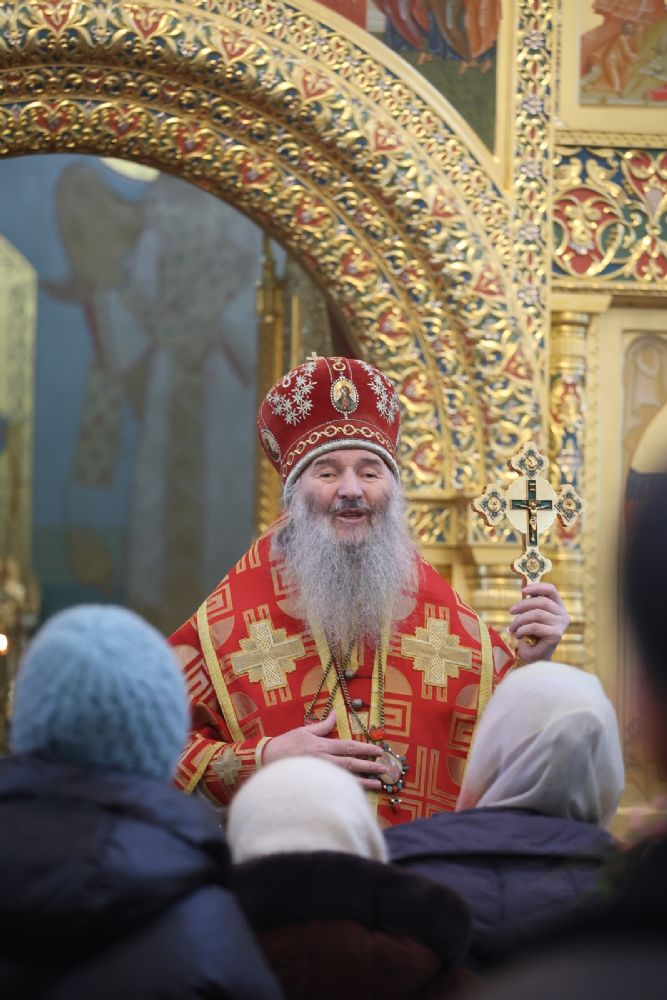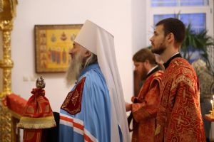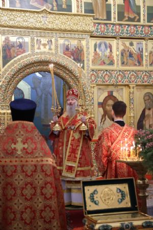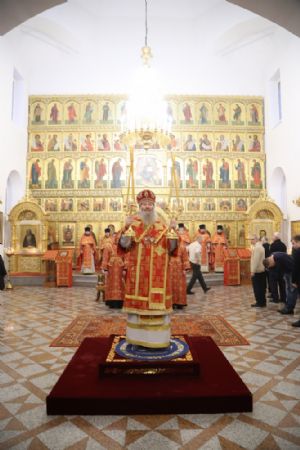 По возвращении в храм священнослужители вознесли молитву великомученице Варваре, и митрополит Иоанн обратился к верующим с проповедью, напомнив житие празднуемой святой.