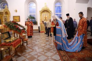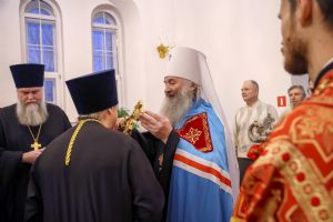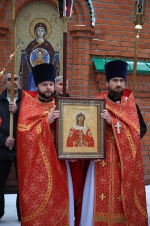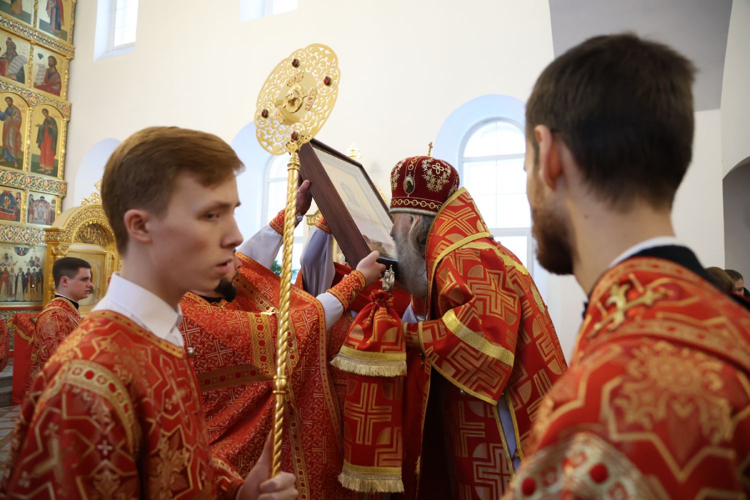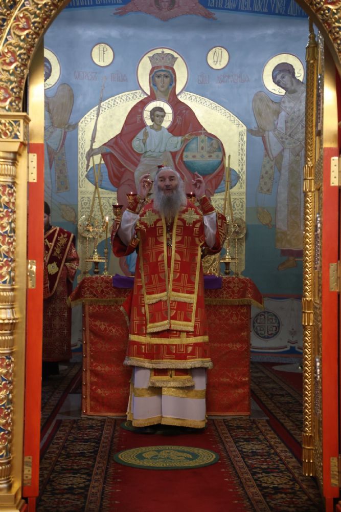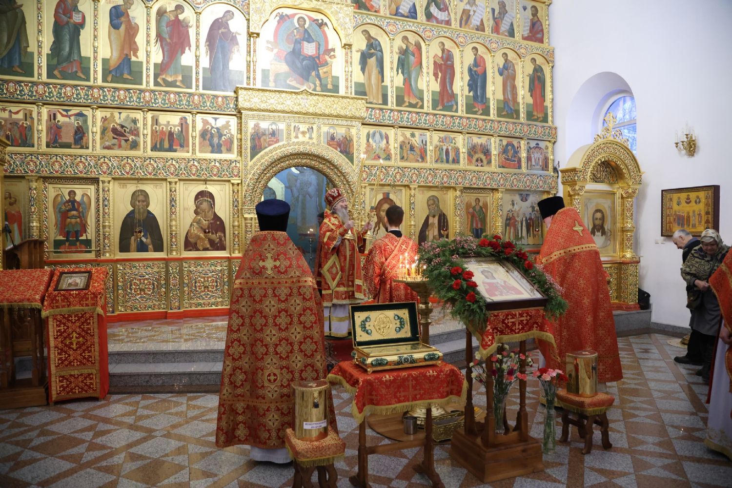 По возвращении в храм священнослужители вознесли молитву великомученице Варваре, и митрополит Иоанн обратился к верующим с проповедью, напомнив житие празднуемой святой.