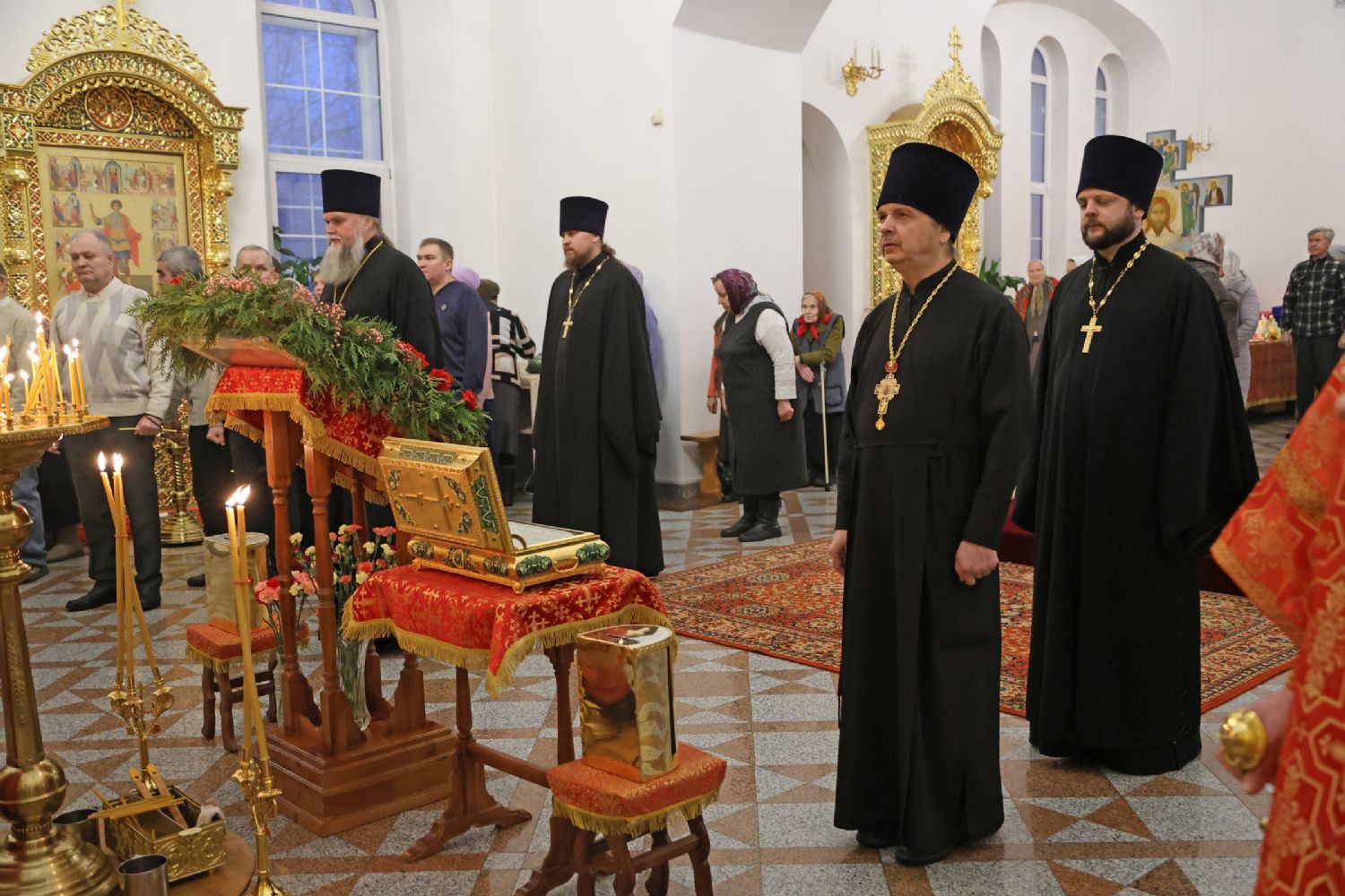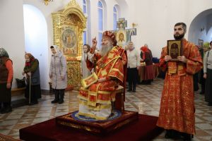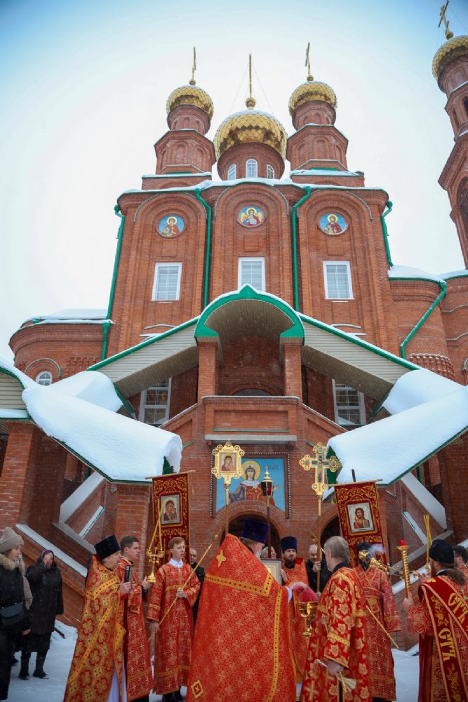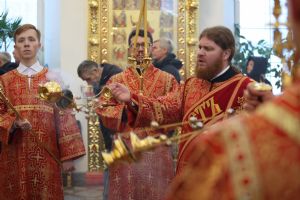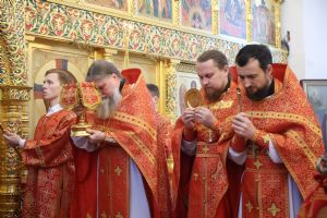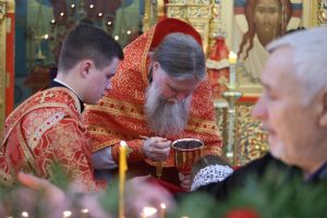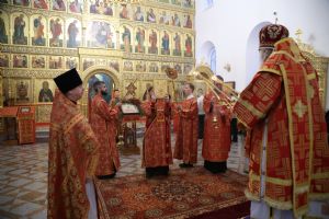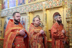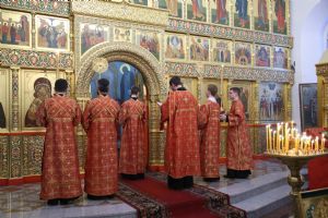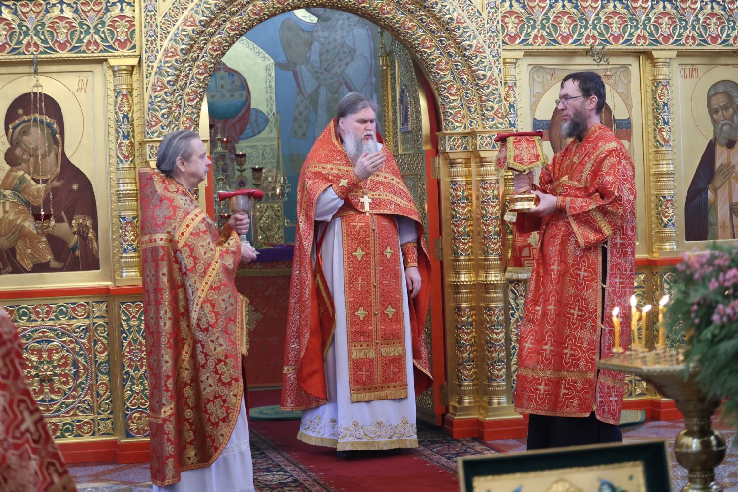 Архипастырю сослужили настоятель храма протоиерей Александр Бачурин, клирики храма протоиерей Василий Лихачев, иереи Константин Домрачев, Виктор Умрихин, Николай Бабич и диакон Алексий Ершов и клирик Благовещенского кафедрального собора г. Йошкар-Олы диакон Андрей Дружинин. Песнопения исполнял хор храма под управлением Елены Умрихиной.