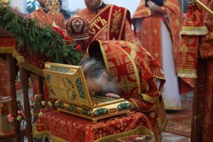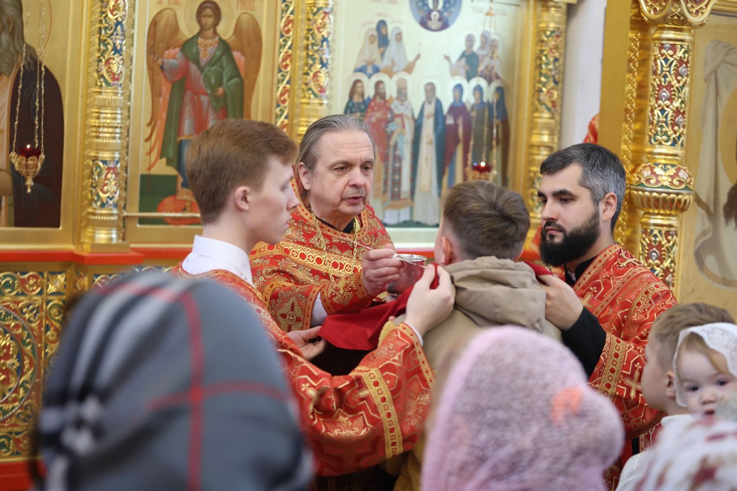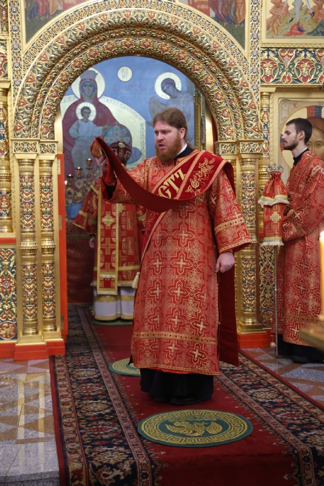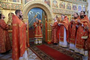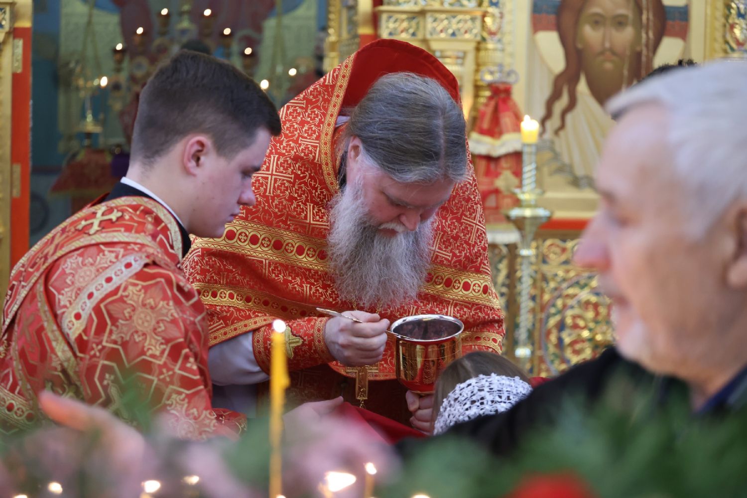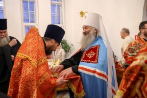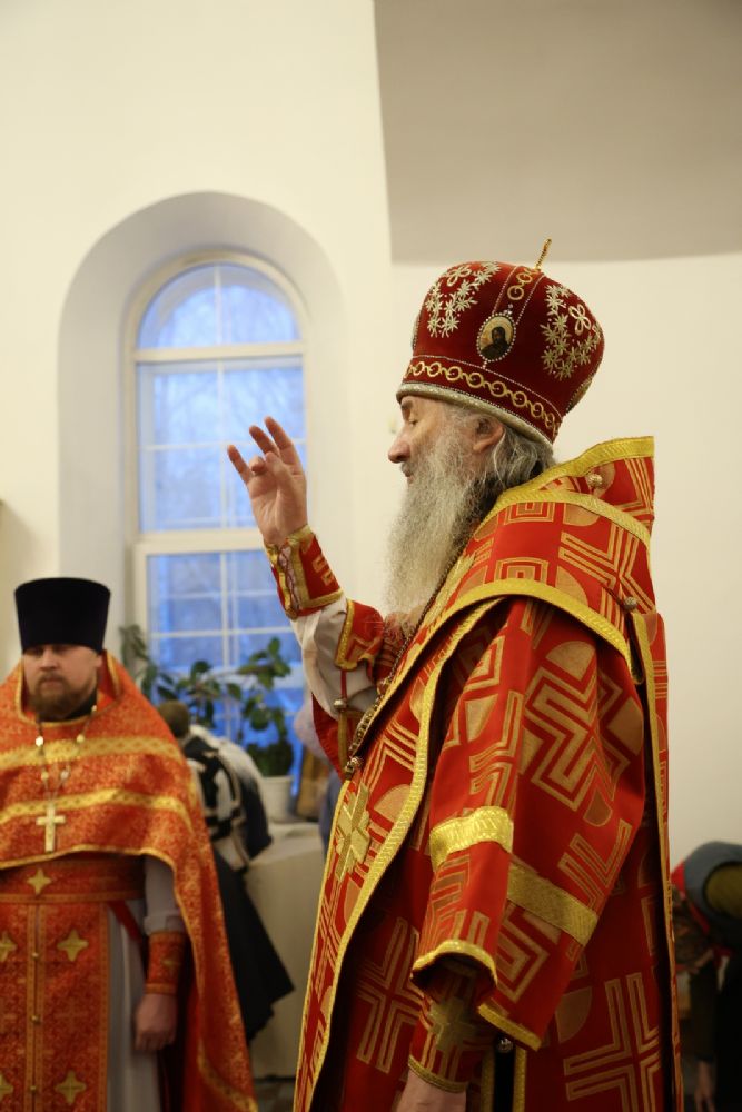 Архипастырю сослужили настоятель храма протоиерей Александр Бачурин, клирики храма протоиерей Василий Лихачев, иереи Константин Домрачев, Виктор Умрихин, Николай Бабич и диакон Алексий Ершов и клирик Благовещенского кафедрального собора г. Йошкар-Олы диакон Андрей Дружинин. Песнопения исполнял хор храма под управлением Елены Умрихиной.