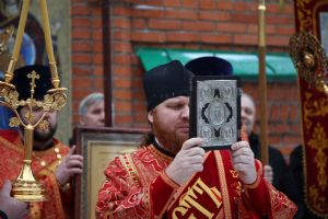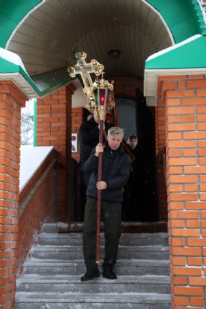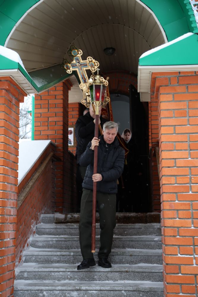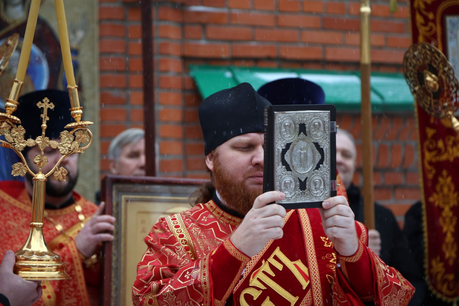 После Литургии прошел крестный ход вокруг храма со чтением Евангелия и кроплением святой водой.