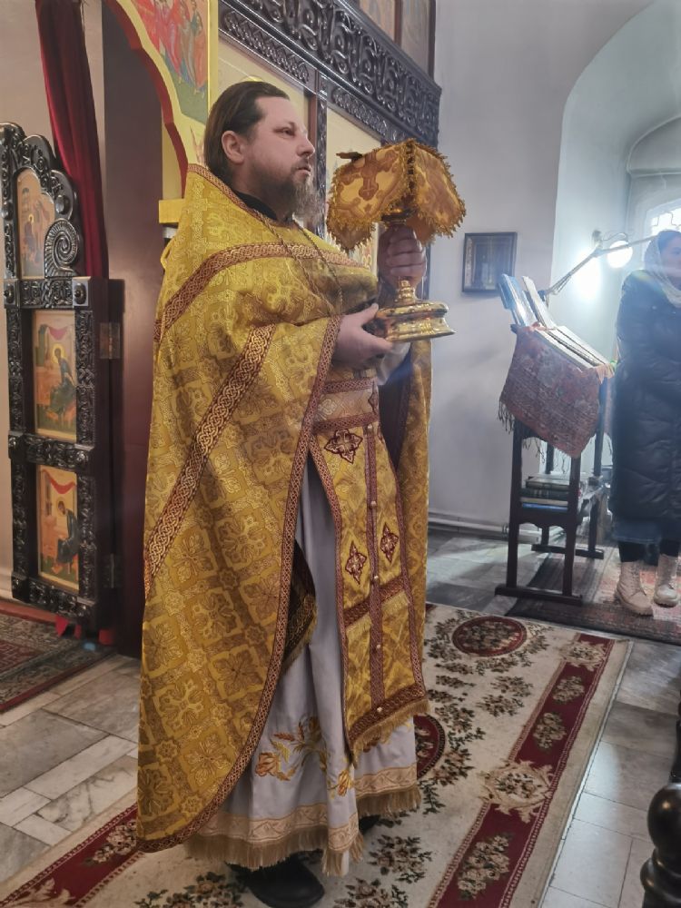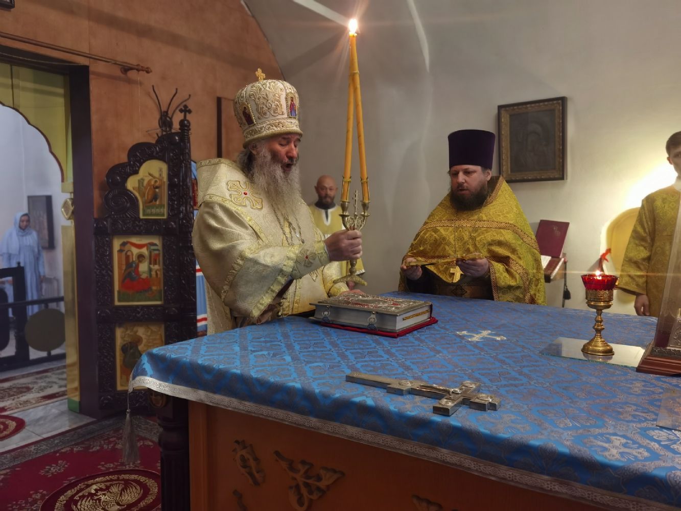 Архипастырю сослужили благочинный Лугово-Марийского церковного округа протоиерей Алексий Никитин, настоятель Покровского храма иерей Алексий Леонов и протодиакон Михаил Козловский. Песнопения исполнял хор «Благовест» под управлением Софии Андреевой.