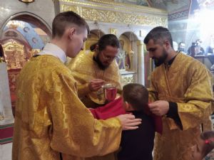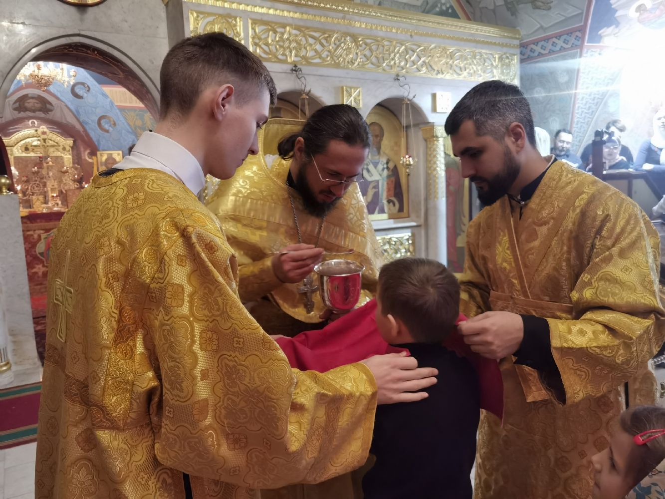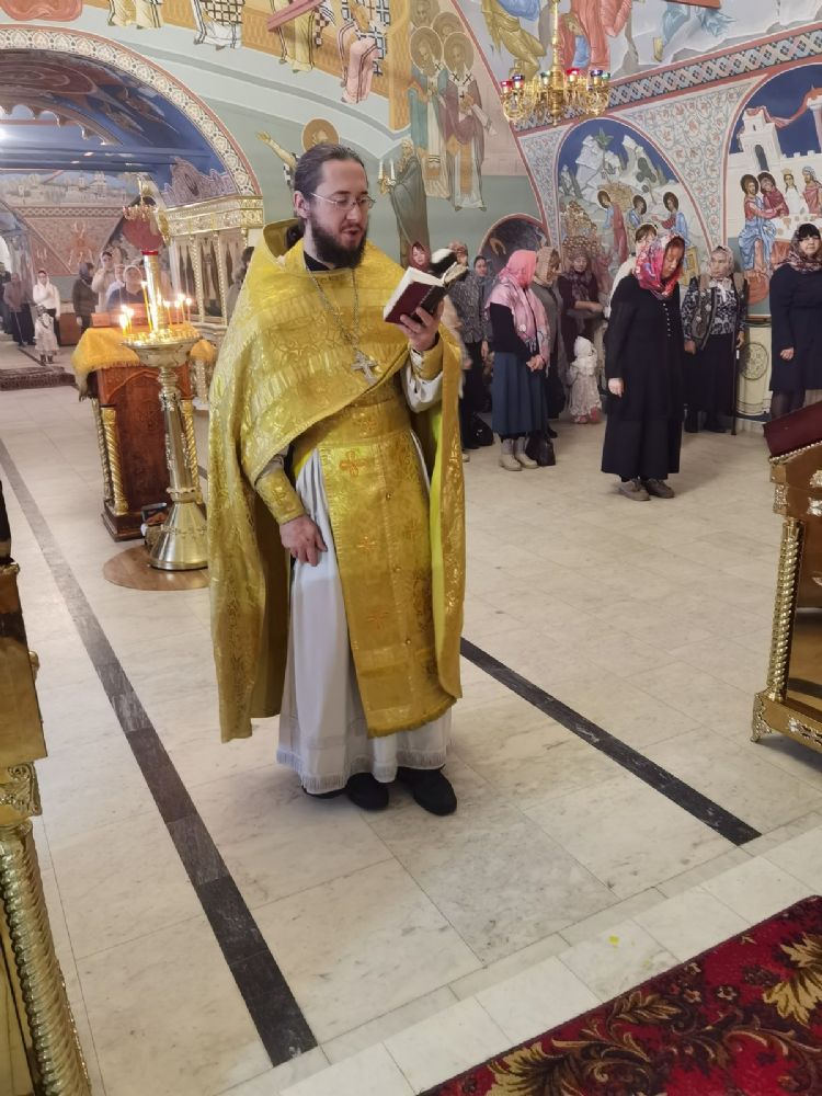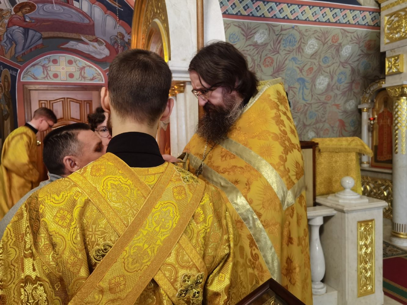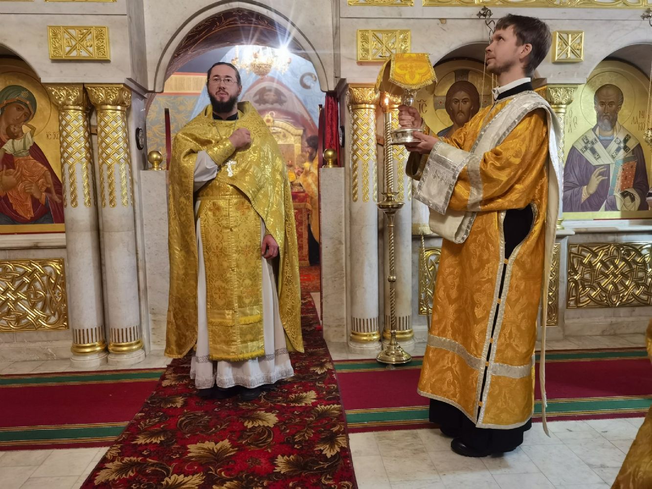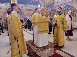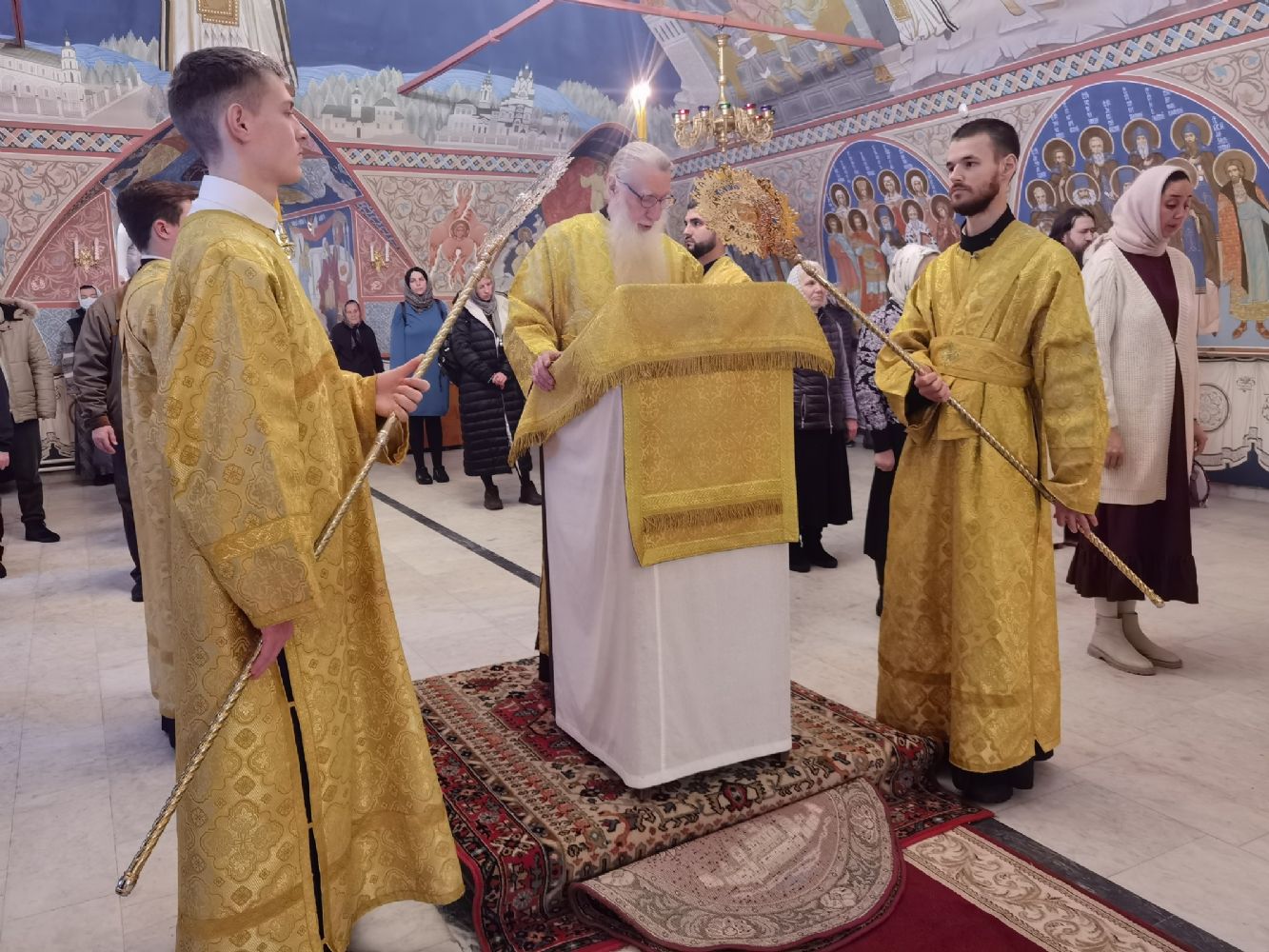 Архипастырю сослужили клирики Вознесенского собора иерей Димитрий Копылов и диакон Владимир Лихачев, а также протодиакон Михаил Козловский. Песнопения исполнял хор Троицкого храма под управлением Анны Ярошевич.