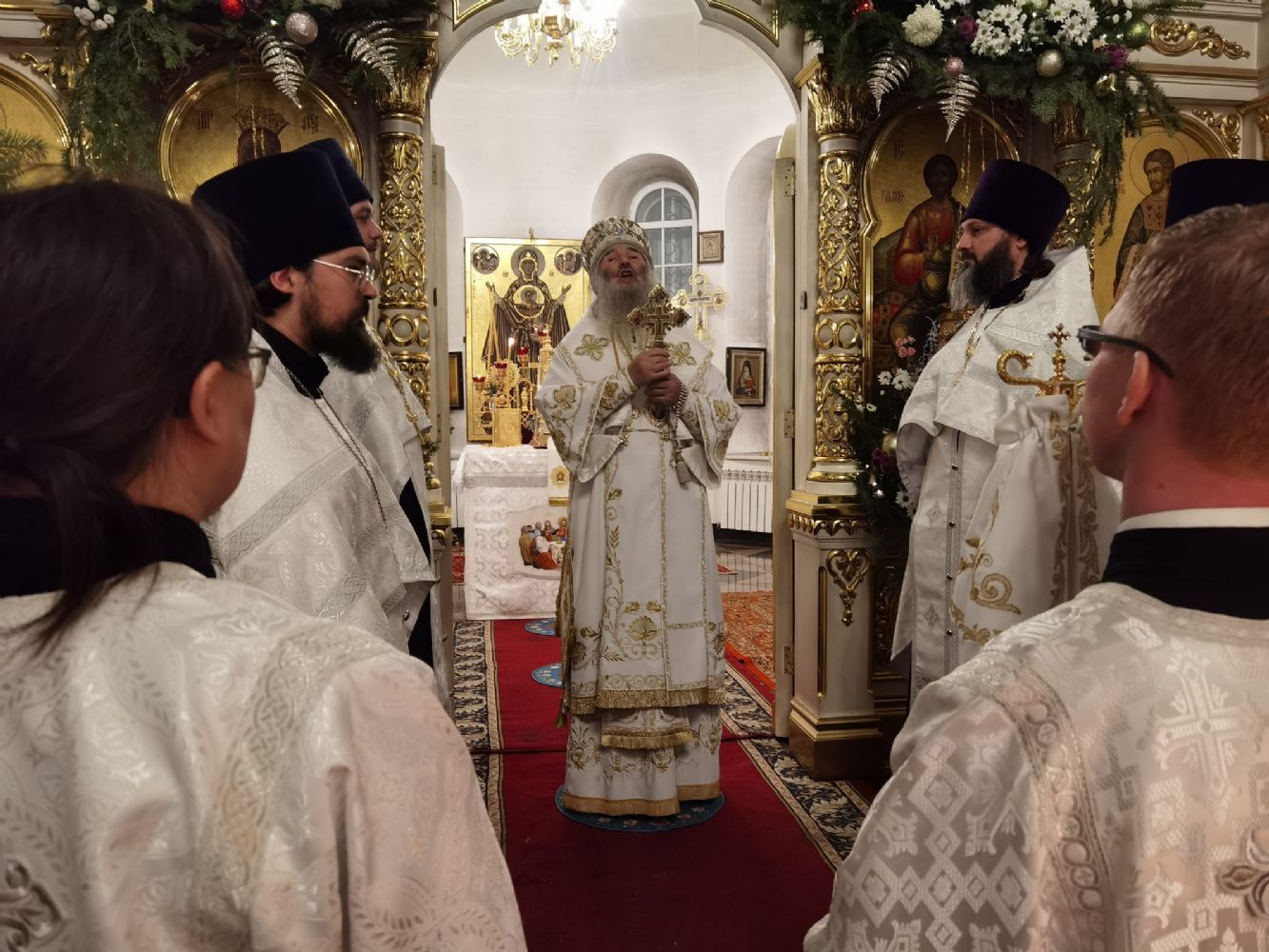 После богослужения митрополит Иоанн обратился к верующим с архипастырским словом, поздравив всех со святыми Рождественскими днями.