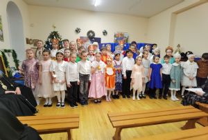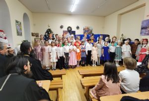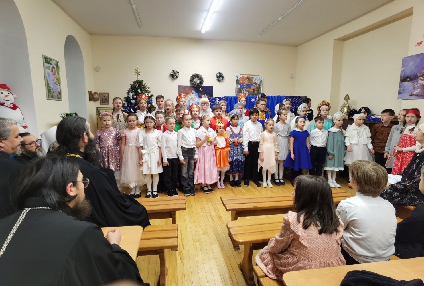 В завершение митрополит Иоанн посетил традиционный рождественский концерт воспитанников воскресной школы храма Рождества Христова – дети исполнили рождественские песни и стихи, подготовили спектакль по мотивам «Сказки о царе Салтане» А.С. Пушкина. После представления владыка вручил ребятам сладкие подарки.