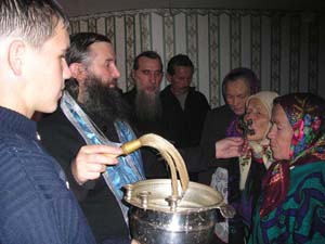 По окончании богослужения Владыка освятил здание богадельни, которое было отремонтировано и обустроено для проживания. На первом и втором этажах уютные комнаты на два-три человека, с иконами в красном углу, на полках — Священное Писание и книги духовного содержания. Везде очень тепло, чисто и сам воздух, кажется, пропитан любовью и заботой. В настоящее время в богадельне находятся под присмотром сестер милосердия и отца Евгения 11 человек — в основном это пожилые бабушки. Своим новым домом они довольны, говорят, что здесь о них заботятся, а главное — храм в десяти метрах, каждому под силу придти, помолиться, в меру сил даже и потрудиться во славу Божию.