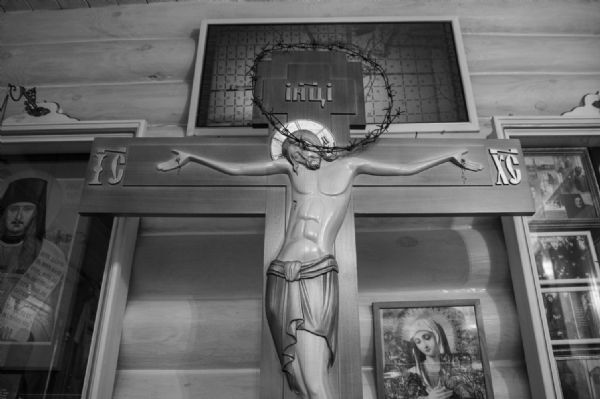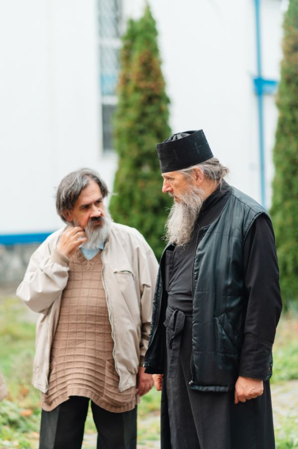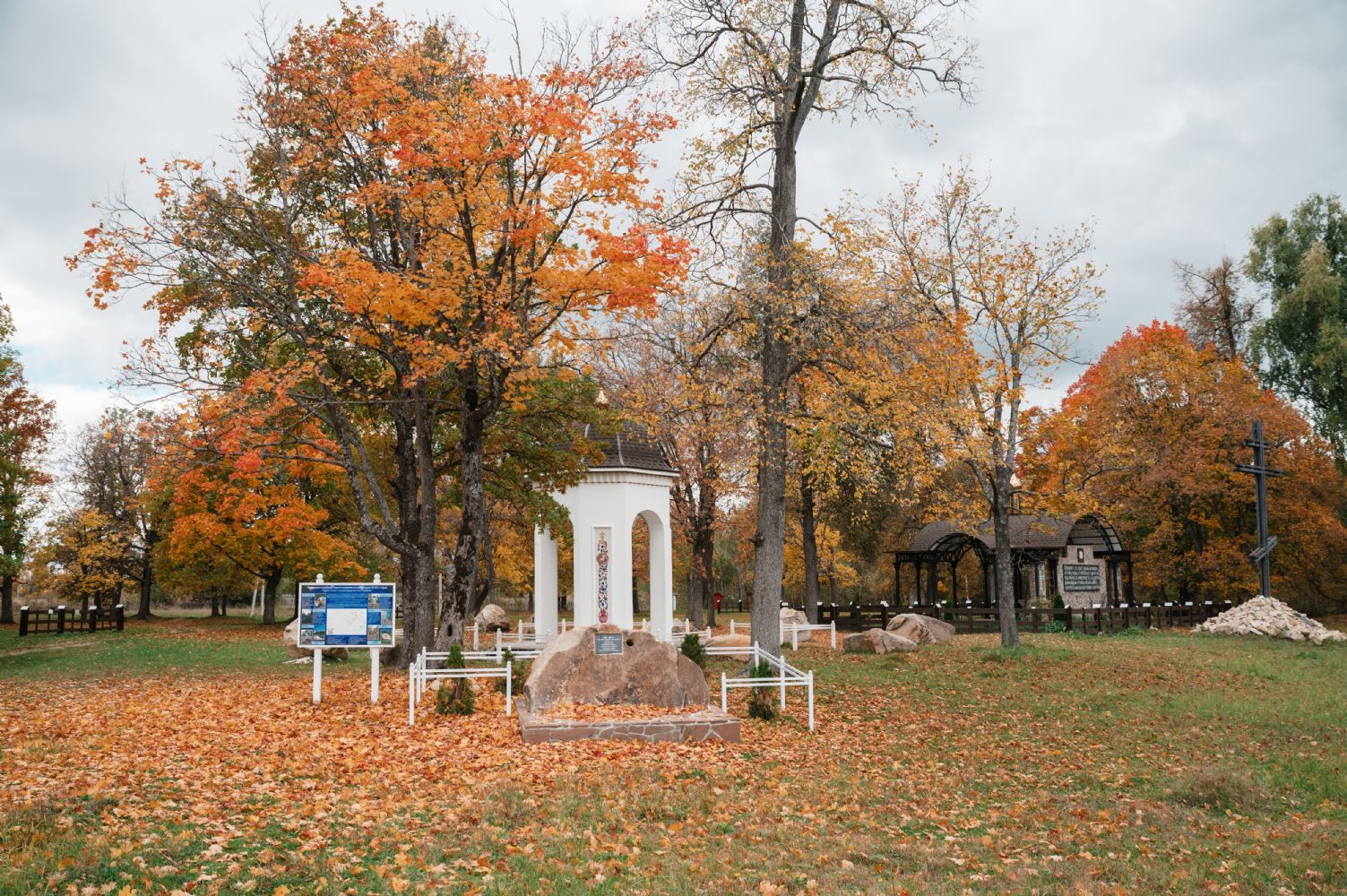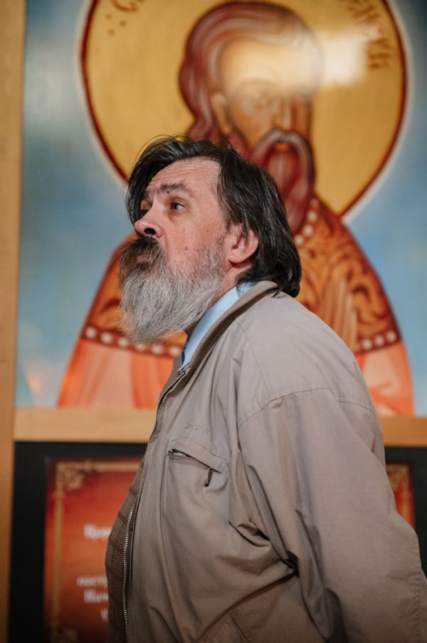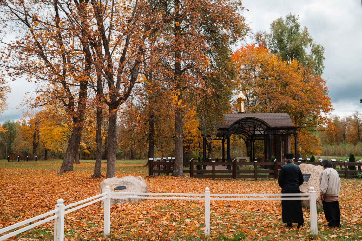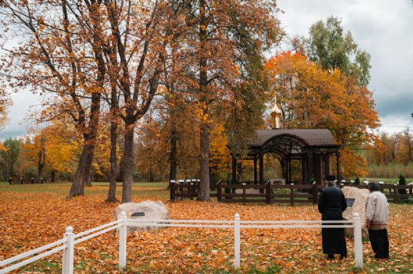 В первой части поездки состоялась встреча с протоиереем Владимиром Тепловым, настоятелем храма Царственных страстотерпцев поселка Первомайский, который является одним из главных устроителей мемориала, посвященного памяти жертв репрессий.
