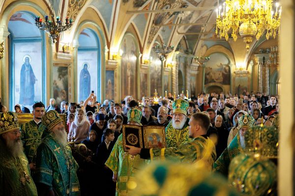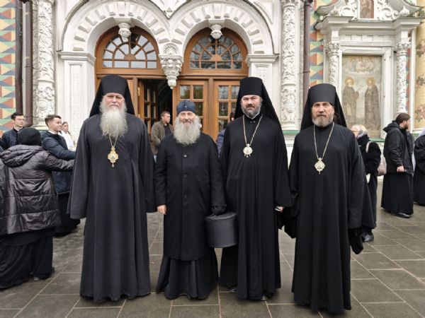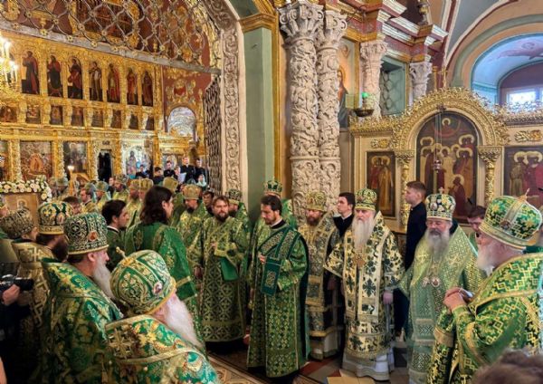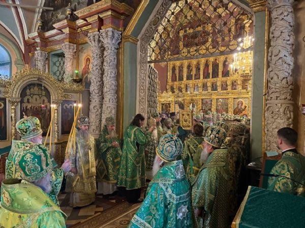В сонме архиереев за Литургией в Сергиевском трапезном храме митрополиту Крутицкому и Коломенскому Павлу сослужили митрополит Йошкар-Олинский и Марийский Иоанн и епископ Волжский и Сернурский Феофан.