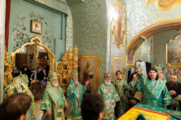 Служение Божественной литургии в Троицком соборе возглавил митрополит Санкт-Петербургский и Ладожский Варсонофий; в Сергиевском трапезном храме — митрополит Крутицкий и Коломенский Павел, Патриарший наместник Московской митрополии; в Свято-Духовом храме — митрополит Ташкентский и Узбекистанский Викентий, глава Среднеазиатского митрополичьего округа; в Покровском академическом храме — митрополит Минский и Заславский Вениамин, Патриарший экзарх всея Беларуси; в Черниговском скиту — митрополит Астраханский и Камызякский Никон.