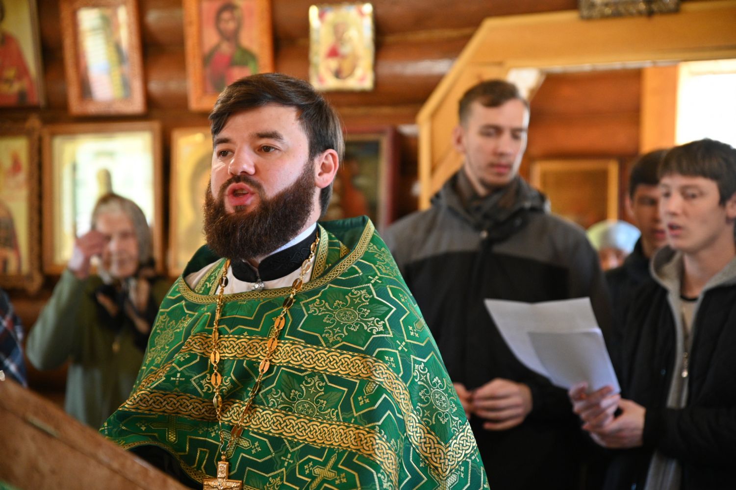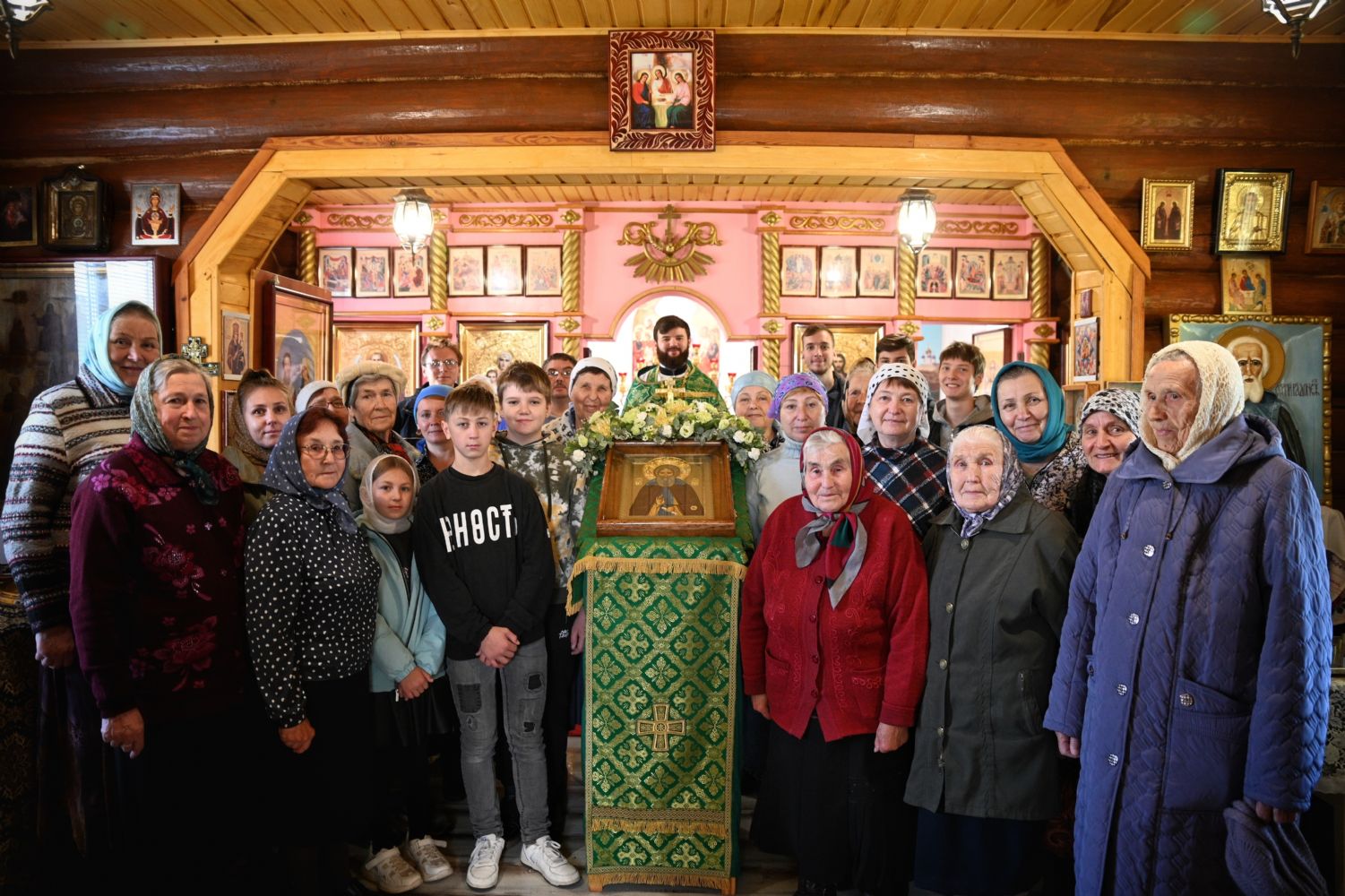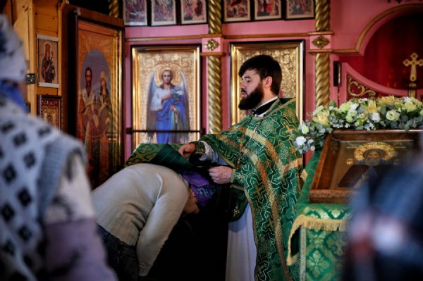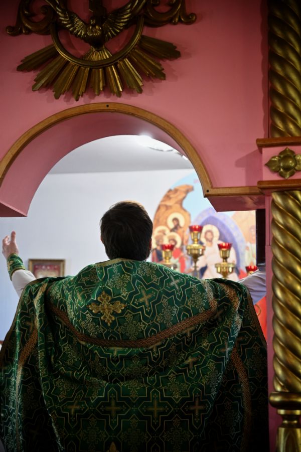 За Литургией традиционно были прочитаны молитвы о Святой Руси и о Божией помощи в строительстве нового каменного храма. Также на каждом богослужении поименно поминаются благотворители храма.