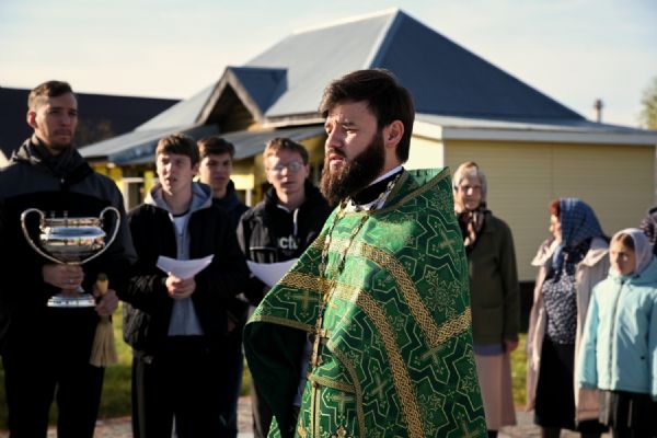 После Литургии состоялся крестный ход и молебен на фундаменте строящейся церкви. Завершился праздник совместным чаепитием всех участников богослужения.