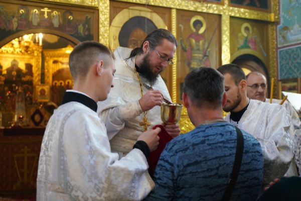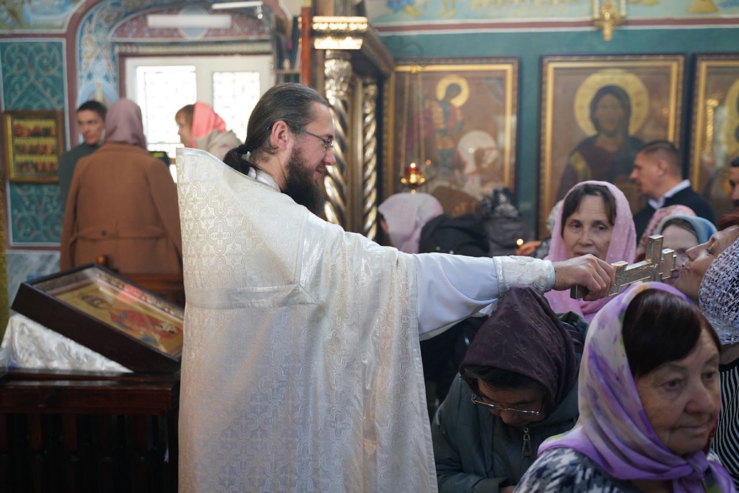 Владыке сослужили клирик Вознесенского собора г. Йошкар-Олы иерей Димитрий Копылов и протодиакон Михаил Козловский. Песнопения исполнял хор храма под управлением Марины Богатыревой.