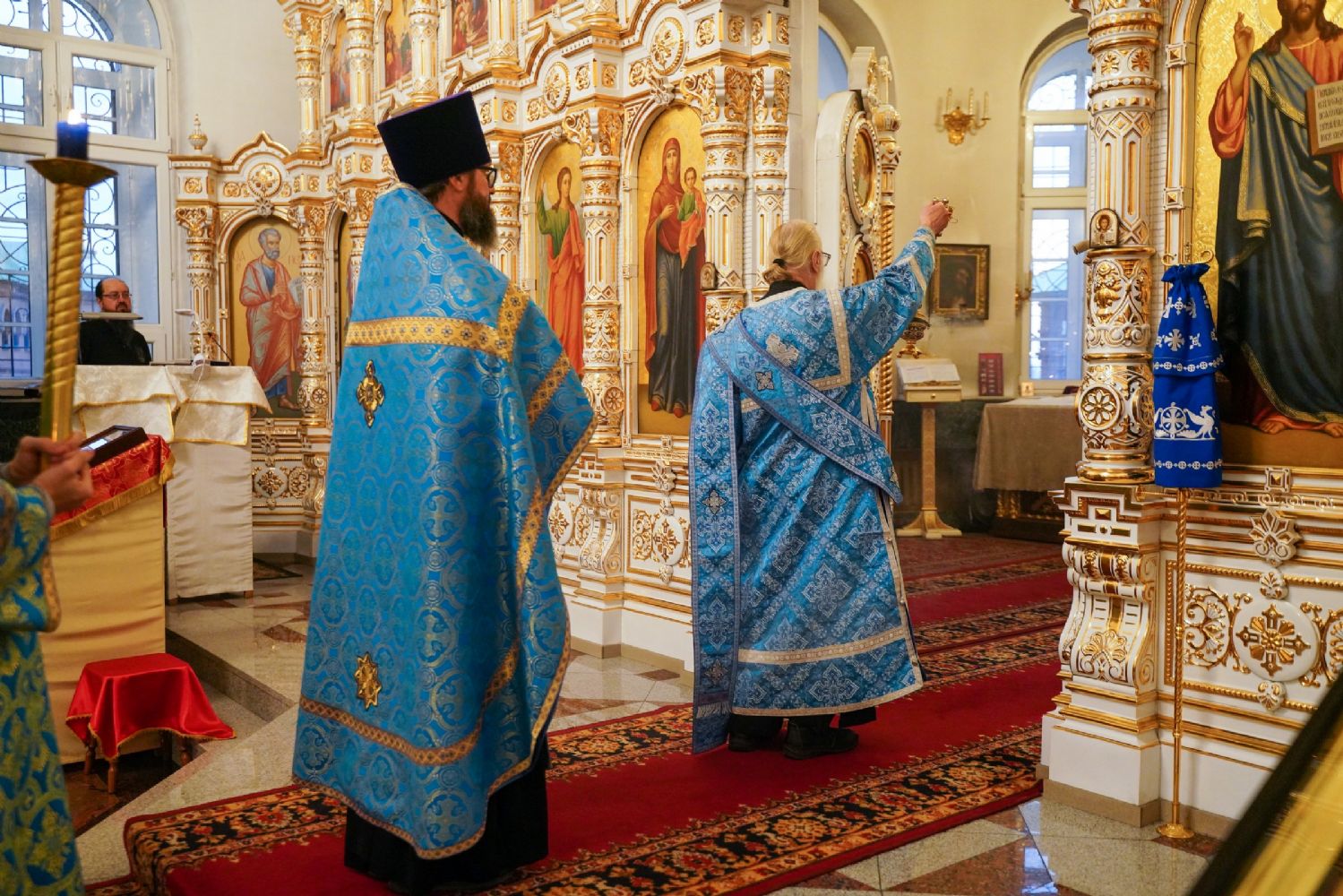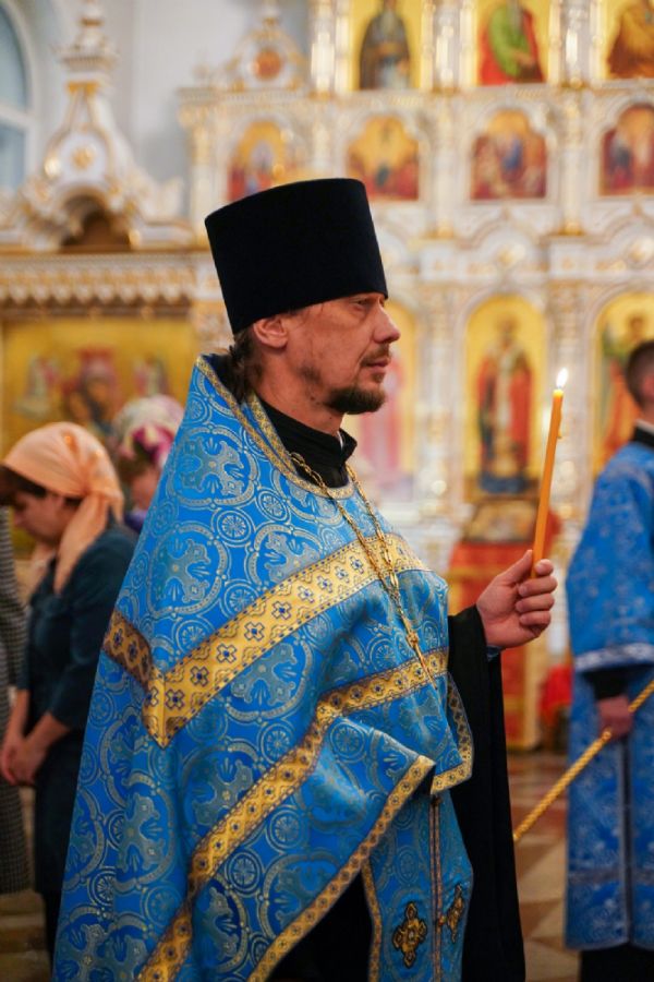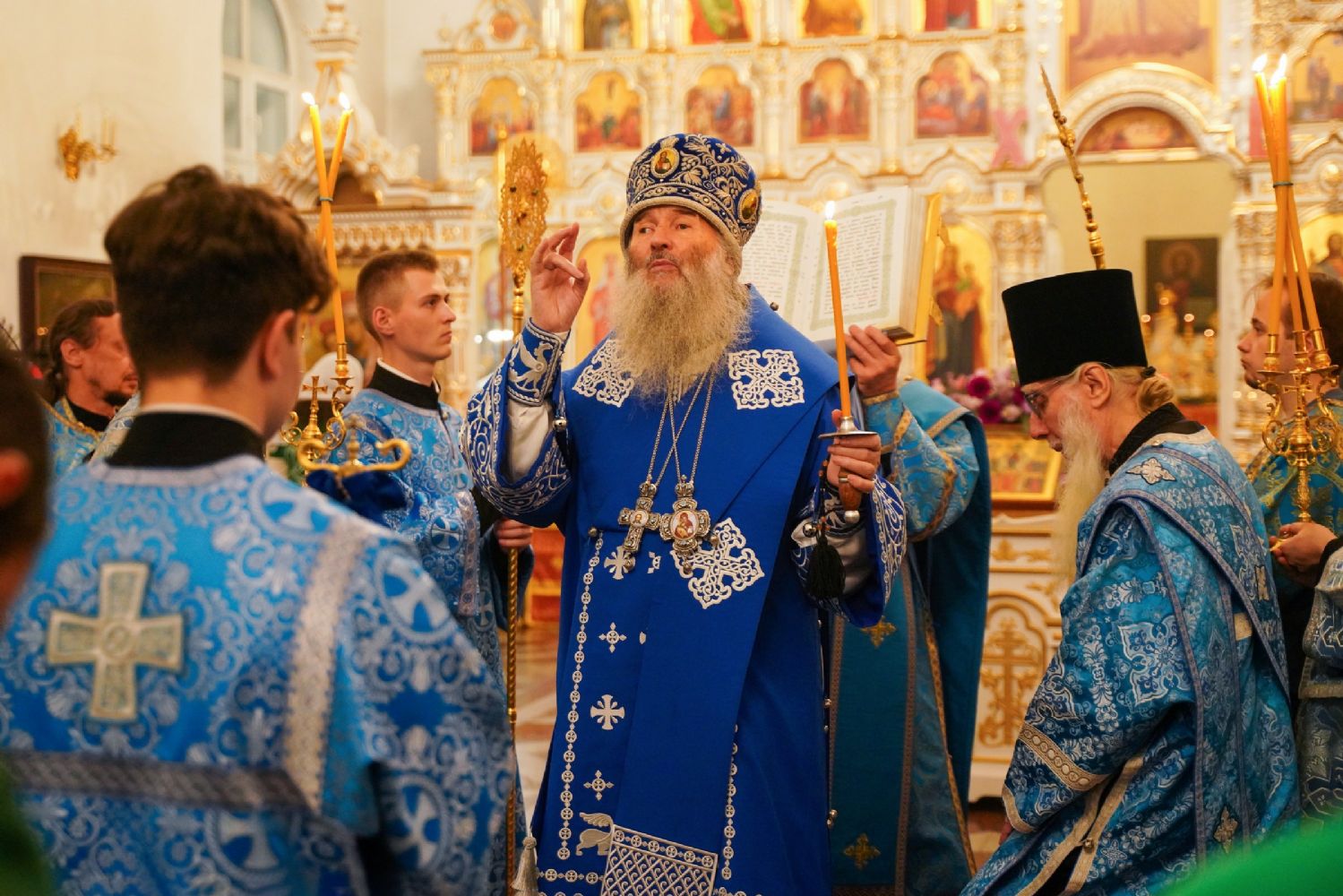 13 октября вечером, накануне праздника Покрова Пресвятой Богородицы, митрополит Йошкар-Олинский и Марийский Иоанн возглавил всенощное бдение в Воскресенском соборе г. Йошкар-Олы, нижний придел которого освящен в честь Покрова Пресвятой Богородицы.