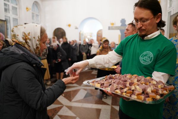 На утрене после чтения Евангелия верующие помазывались освященным елеем и вкушали освященный хлеб.