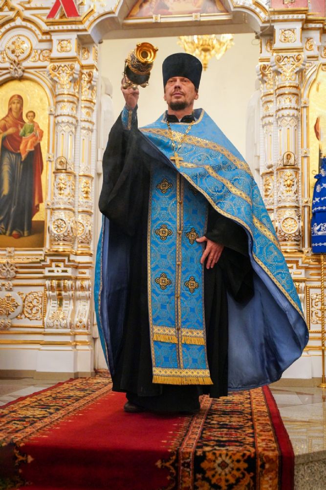 Владыке сослужили секретарь Йошкар-Олинского епархиального управления иерей Димитрий Дьяков, настоятель собора иерей Андрей Кочаков, клирик собора диакон Алексий Кузнецов, а также протодиакон Михаил Козловский. Песнопения исполнял хор собора под управлением Алисы Вылегжаниной.
