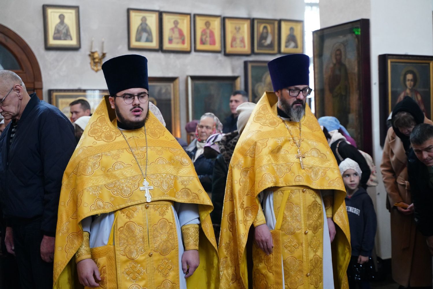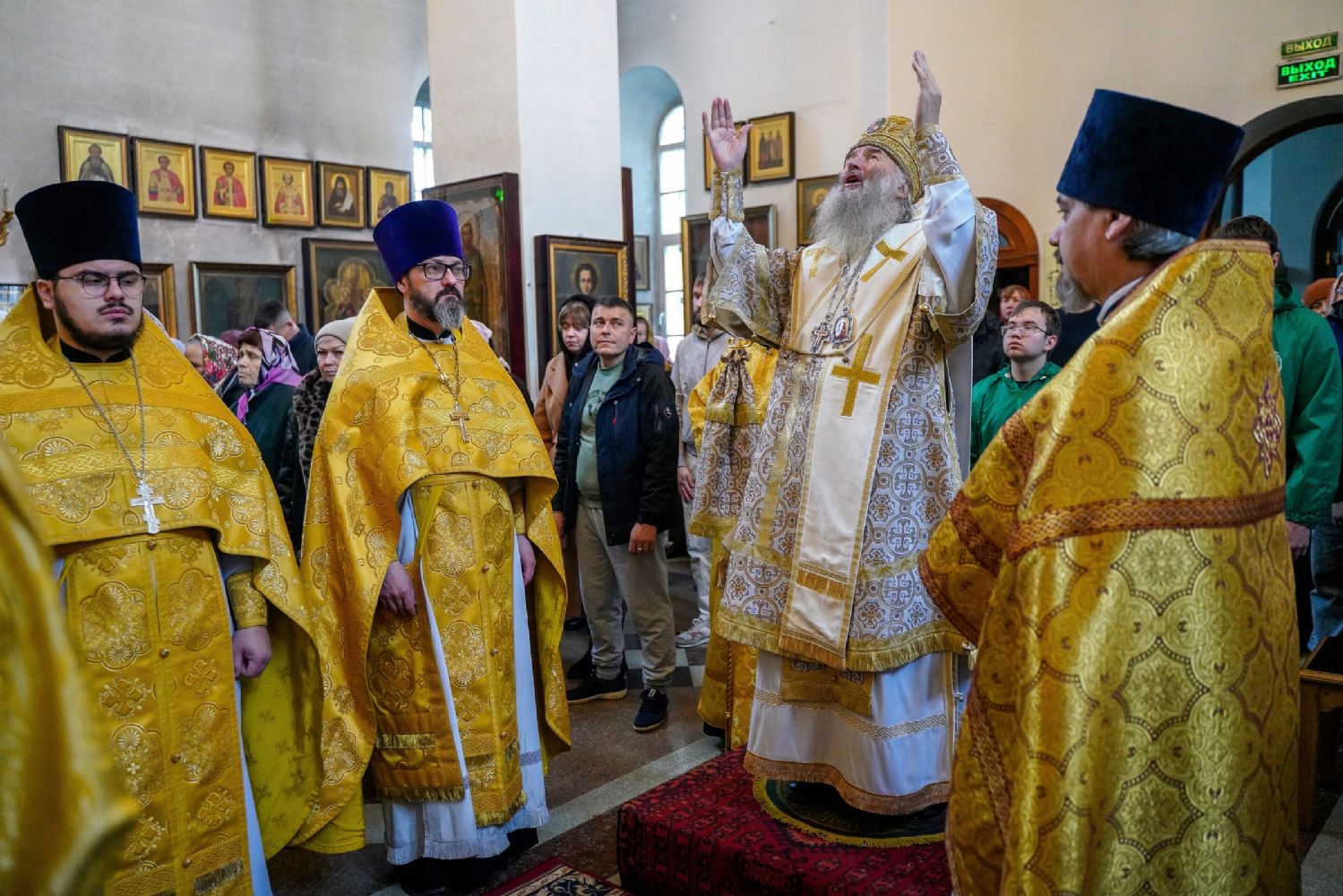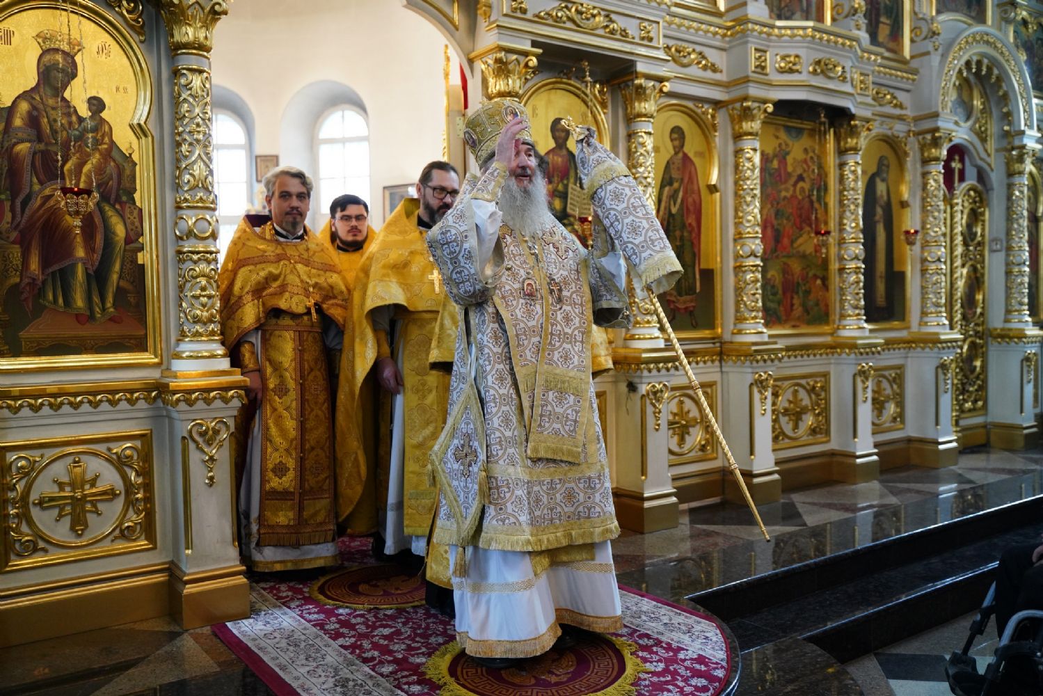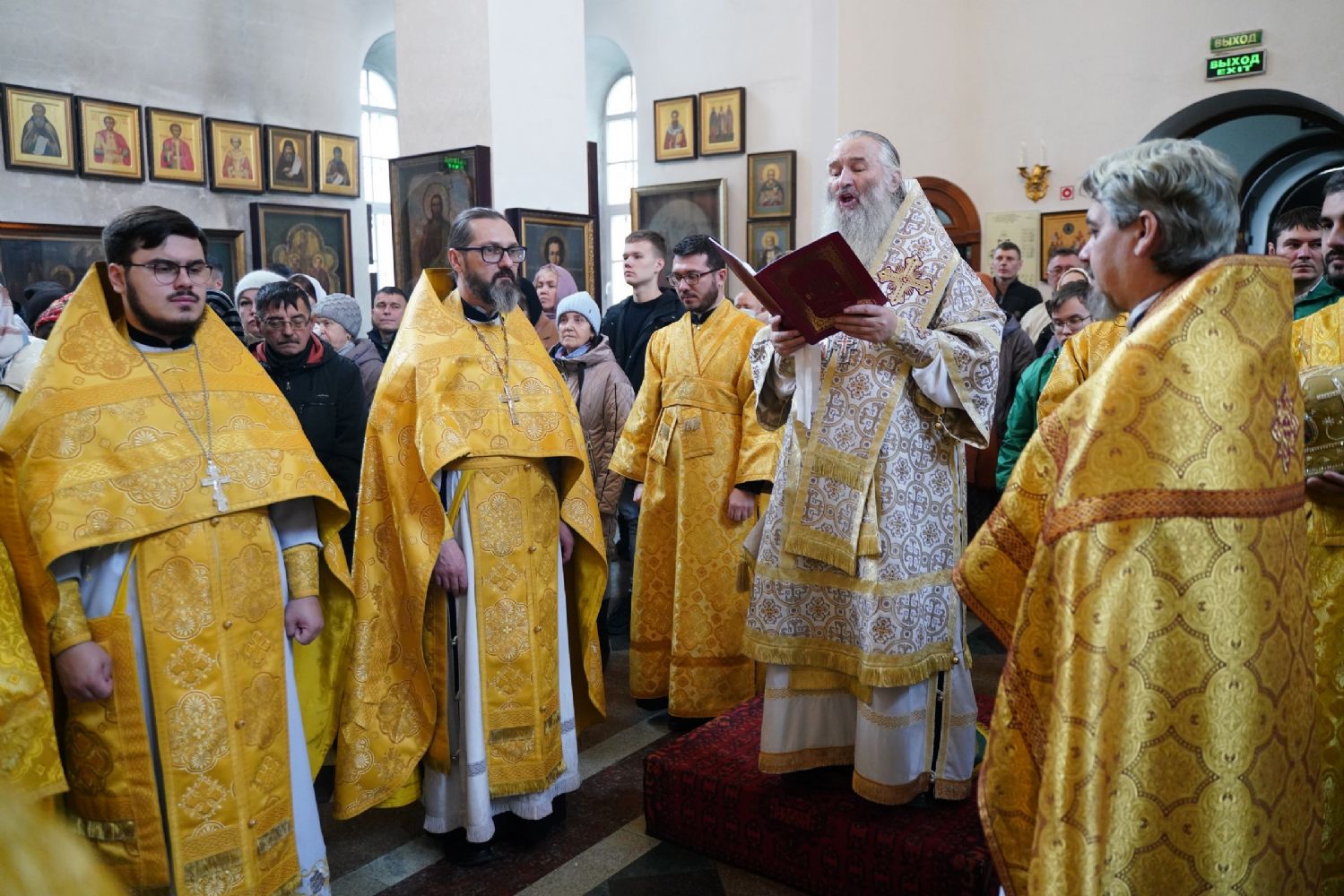 Владыке сослужили секретарь Йошкар-Олинского епархиального управления иерей Димитрий Дьяков, настоятель храма иерей Александр Лоскутов, клирик Минусинской епархии иерей Матфей Фокша, протодиакон Михаил Козловский и клирик храма Рождества Христова диакон Даниил Зорин. Песнопения исполнял хор храма под управлением регента Наталии Поповой.