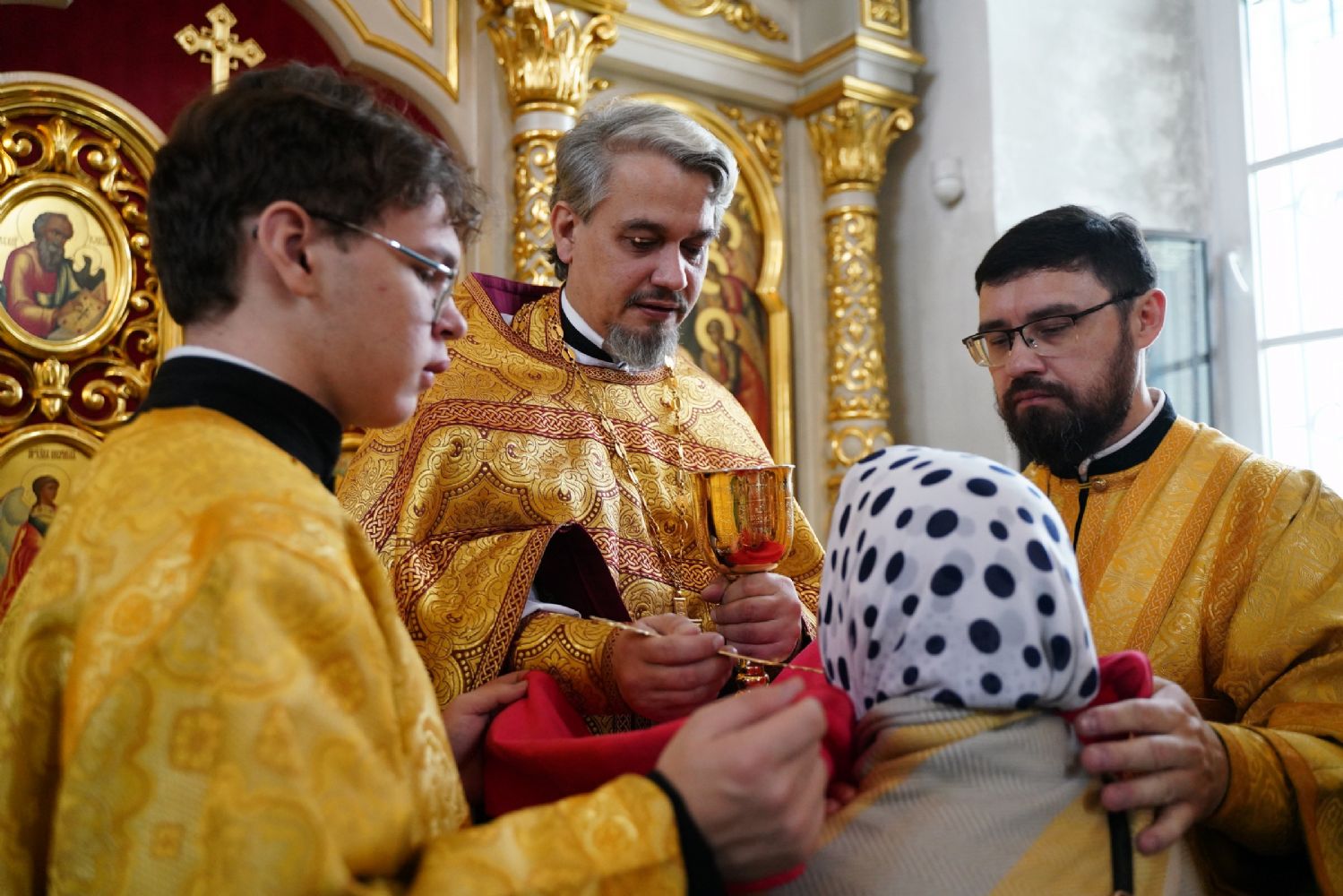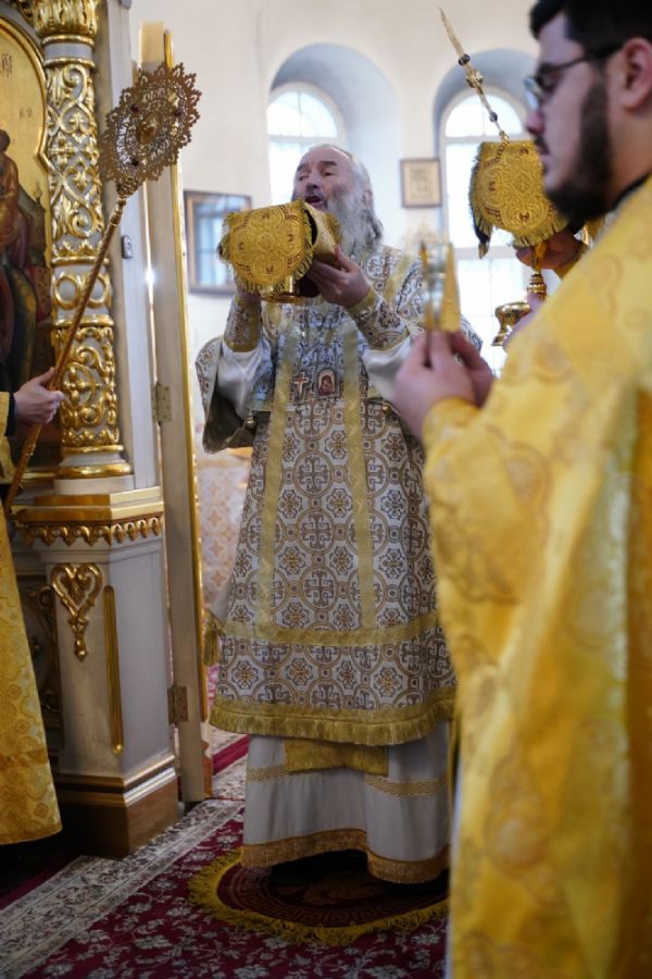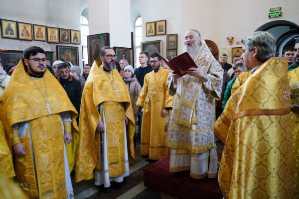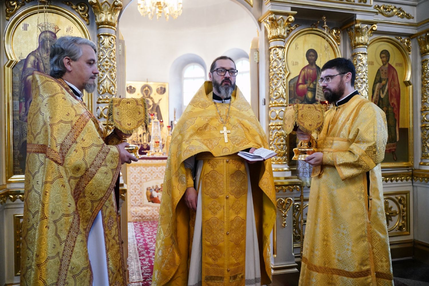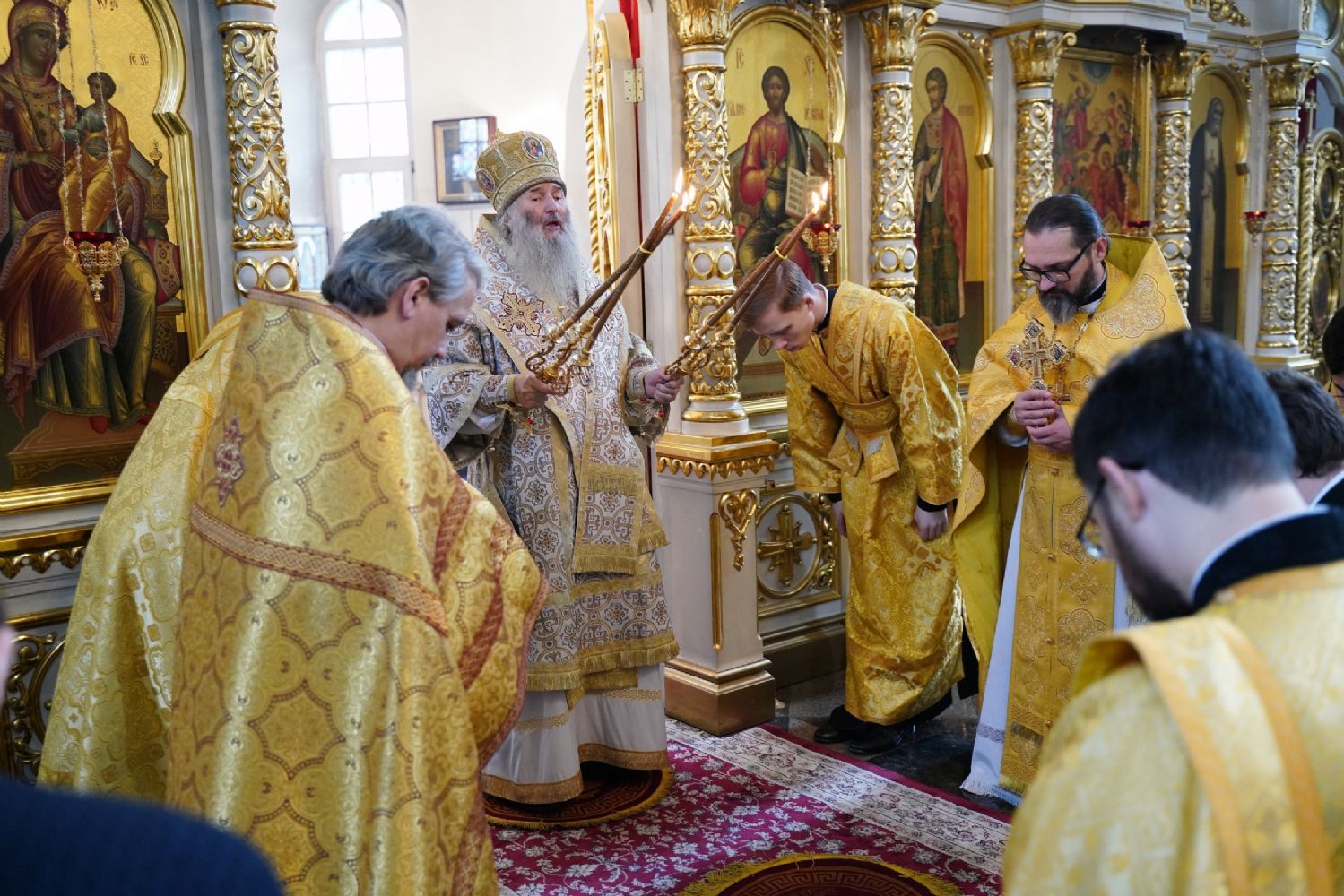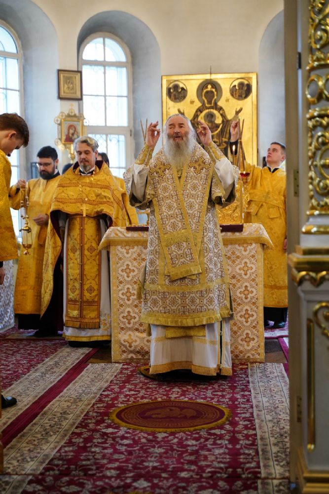 Владыке сослужили секретарь Йошкар-Олинского епархиального управления иерей Димитрий Дьяков, настоятель храма иерей Александр Лоскутов, клирик Минусинской епархии иерей Матфей Фокша, протодиакон Михаил Козловский и клирик храма Рождества Христова диакон Даниил Зорин. Песнопения исполнял хор храма под управлением регента Наталии Поповой.
