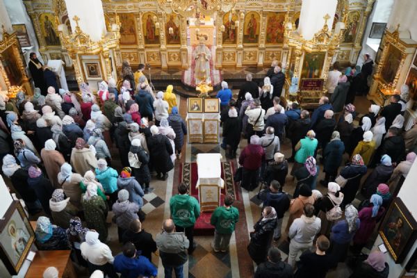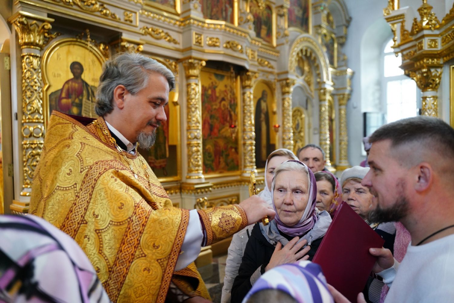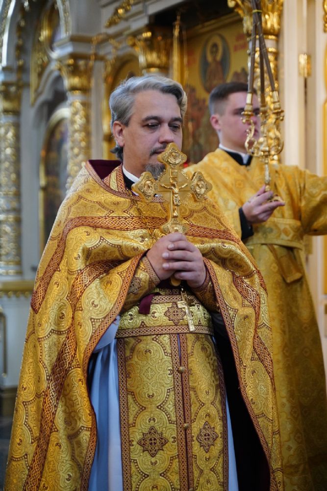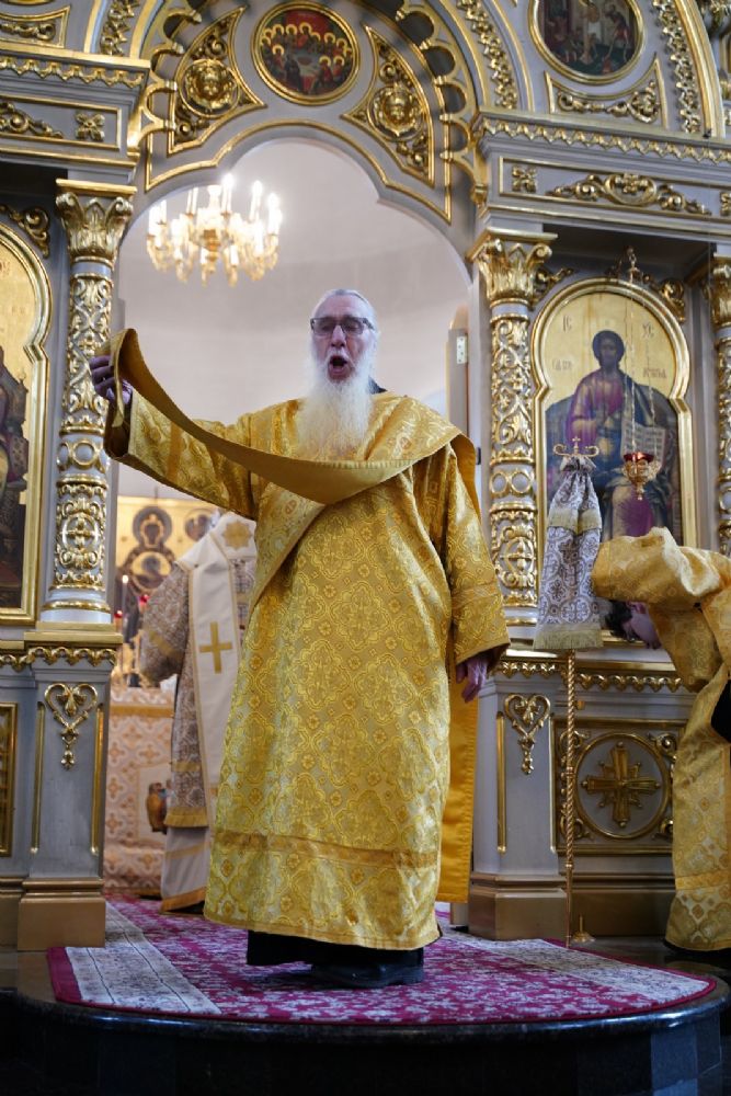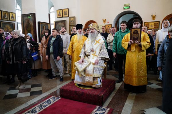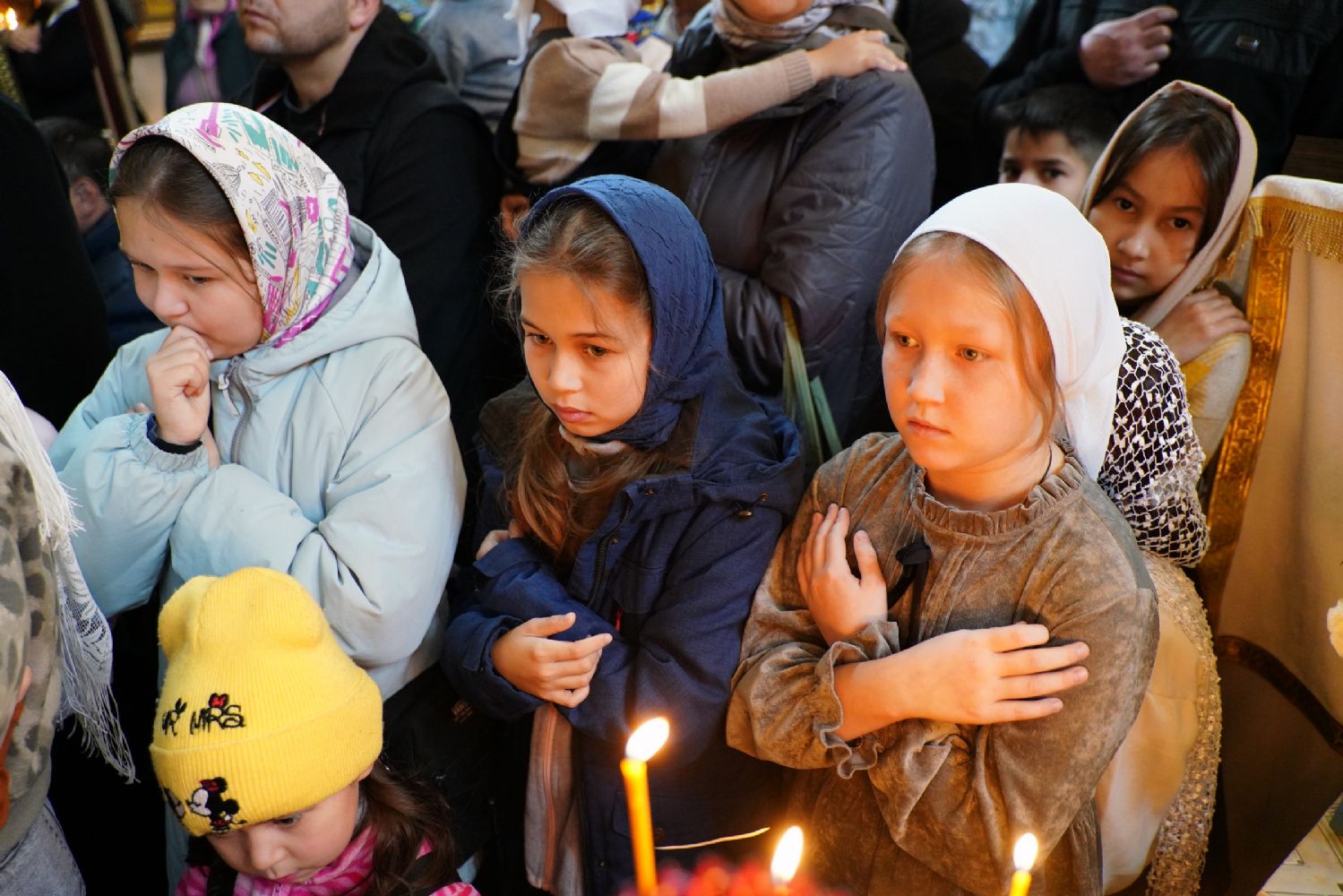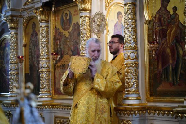 Владыке сослужили секретарь Йошкар-Олинского епархиального управления иерей Димитрий Дьяков, настоятель храма иерей Александр Лоскутов, клирик Минусинской епархии иерей Матфей Фокша, протодиакон Михаил Козловский и клирик храма Рождества Христова диакон Даниил Зорин. Песнопения исполнял хор храма под управлением регента Наталии Поповой.