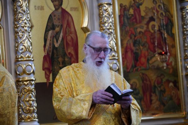 После чтения Евангелия митрополит Иоанн обратился к собравшимся с проповедью, разъяснив духовный смысл притчи о богаче и Лазаре.
