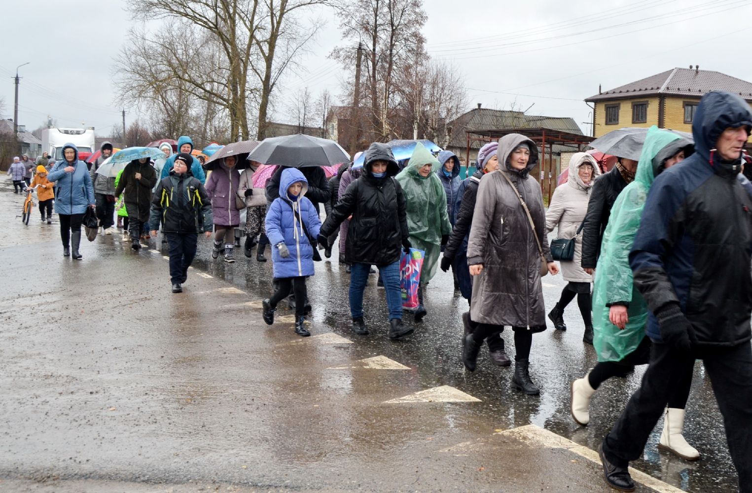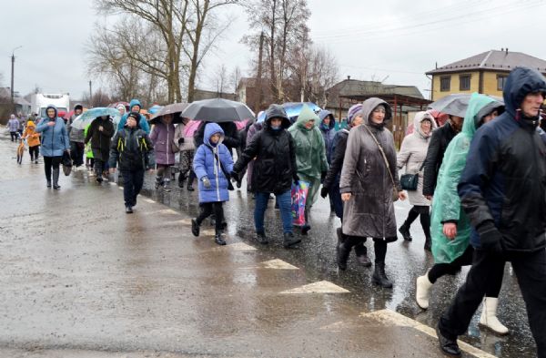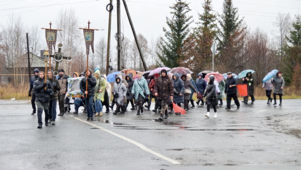 После Литургии, по многолетней доброй традиции, прихожане оршанского храма отправились в 8-километровый крестный ход из Оршанки в Малый Кугунур. Им не помешал даже непрекращающийся дождь – верующие со чтимой иконой и хоругвями шли, радостно воспевая архангельскую песнь Царице Небесной.