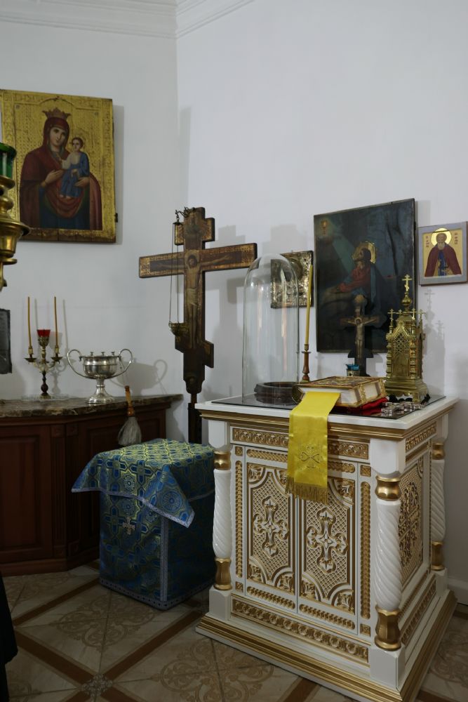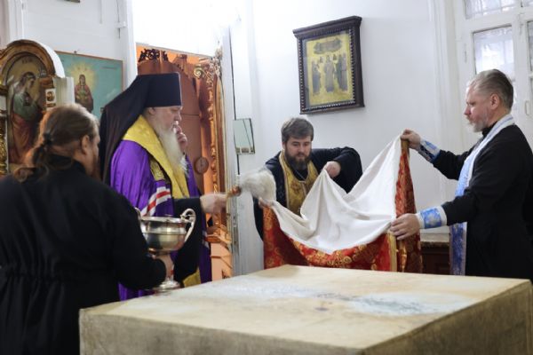 5 ноября епископ Волжский и Сернурский Феофан совершил освящение новых окладов на престол и жертвенник в храме святителя Гурия, архиепископа Казанского на Архиерейском подворье в Петъялах.