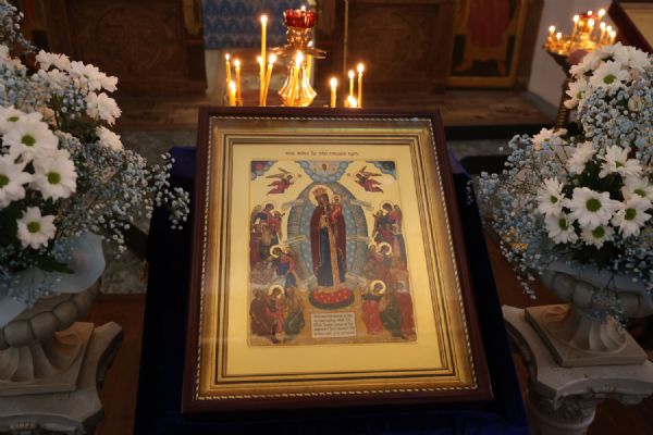 «Сегодня мы собрались в этом храме освященном в честь иконы Божией Матери «Всех скорбящих Радость». Из названия этой иконы мы видим, что для многих людей, которые с верой призывают Царицу Небесную, Она стала радостью, утешением и отрадой во многих скорбях. Празднуемый сегодня Её честной образ прославился дивным чудом в 1647 году. В Москве на Ордынке жила раба Божия Евфимия, которая приходилась родной сестрой Патриарху Иоакиму. На её теле была глубокая рана, через которую были видны внутренности. Женщина тяжко страдала, но не отчаивалась, надеясь на помощь Божию. Она стала взывать к Пречистой Богородице и услышала в ответ, что для исцеления она должна позвать из Преображенского храма священника с иконой Божией Матери, именуемой «Всех скорбящих Радость», чтобы он совершил водосвятный молебен и окропил больную. После молебна Евфимия почувствовала прибавление сил, рана вскоре затянулась, и женщина стала абсолютно здоровой.
