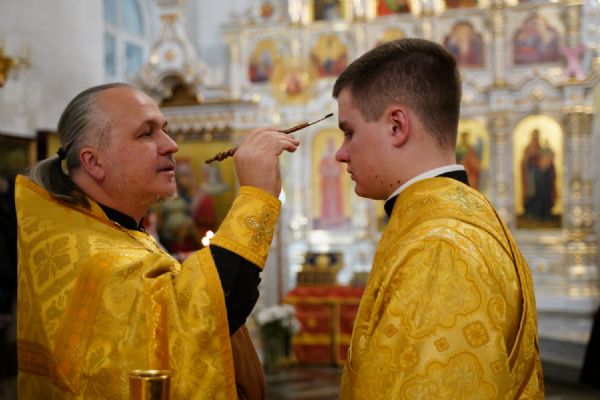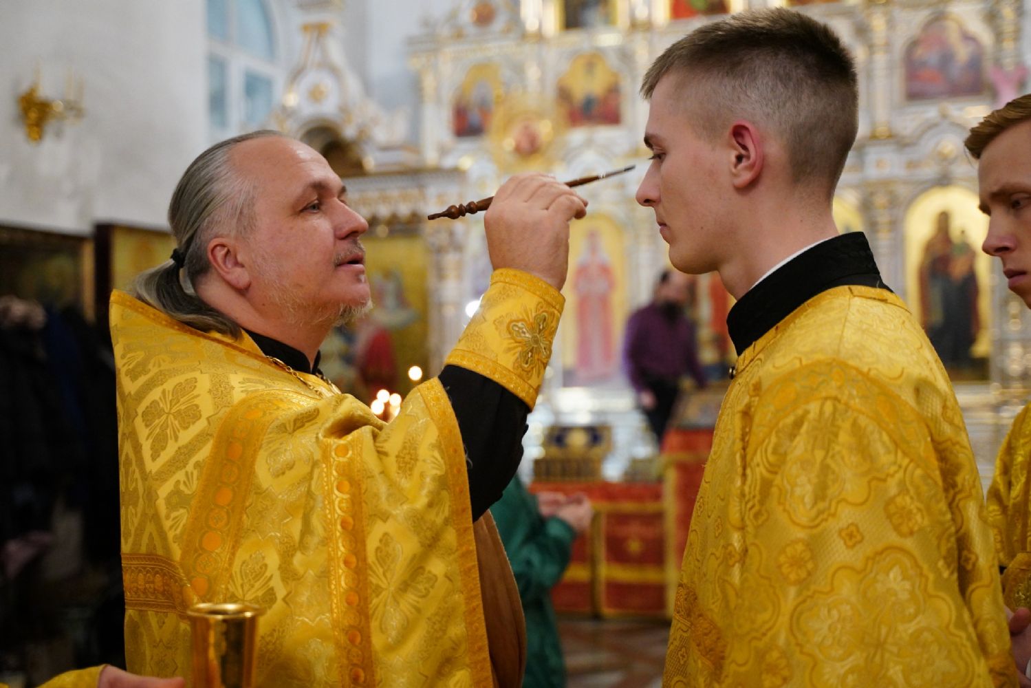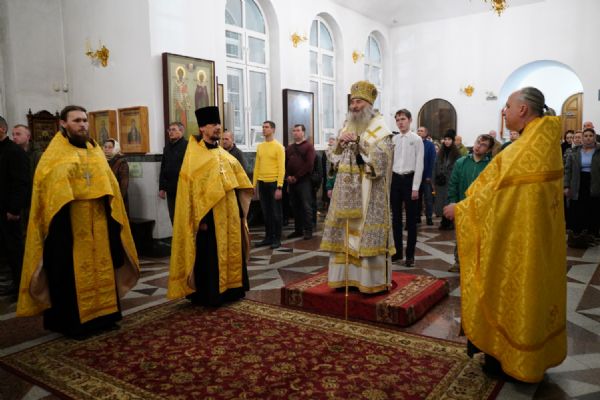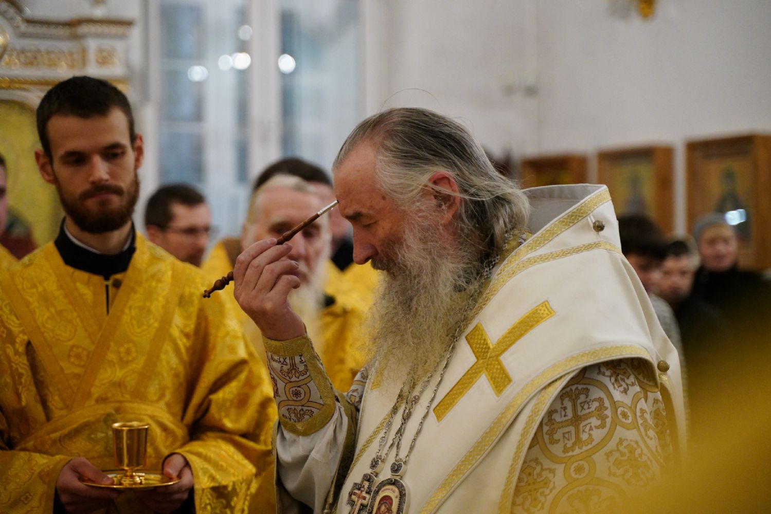 Архипастырю сослужили настоятель собора иерей Андрей Кочаков, клирики собора иерей Леонид Вылекжанин, иерей Димитрий Лукьянов и диакон Алексий Кузнецов, а также протодиакон Михаил Козловский. Песнопения исполнял хор собора под управлением Елены Поглазовой.