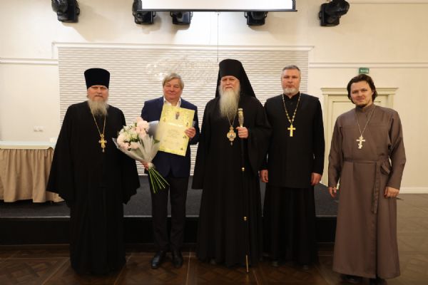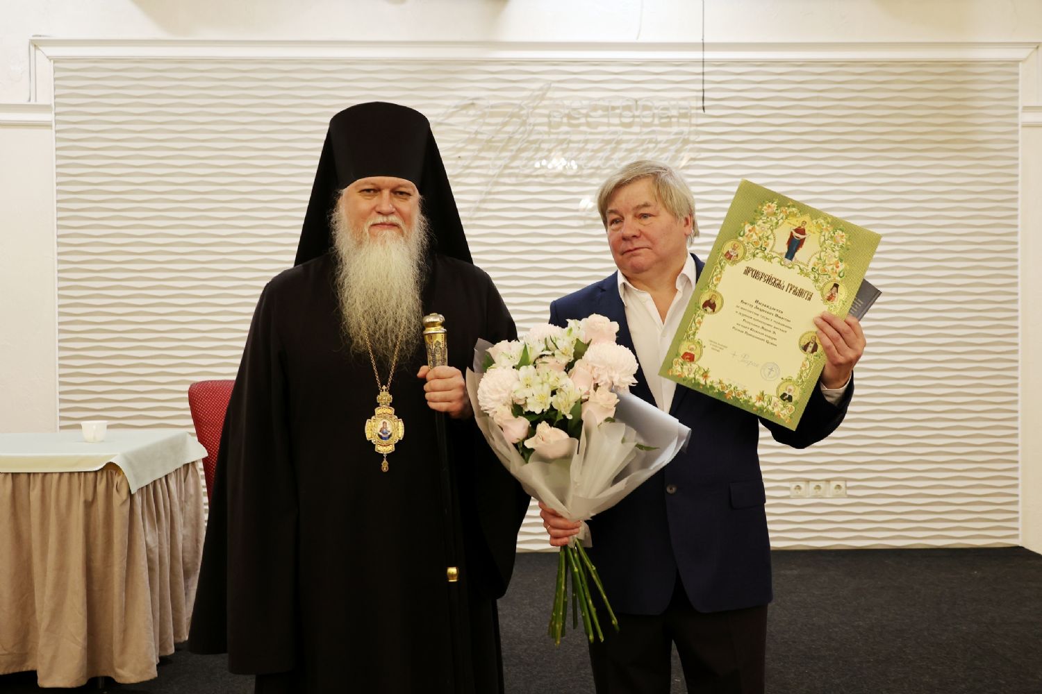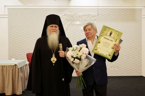 В завершение епископ Феофан тепло поблагодарил Виктора Андреевича за прекрасное исполнение есенинских стихов и вручил народному артисту Виктору Никитину архиерейскую грамоту за многолетние труды в образовании и духовном просвещении жителей Республики Марий Эл на благо Волжской епархии.