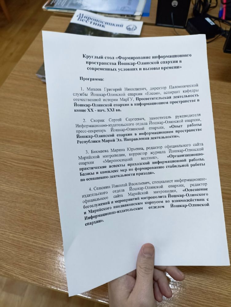 Организаторами мероприятия выступили пресс-служба Йошкар-Олинской епархии и епархиальная Паломническая служба «Елеон». Участие в работе круглого стола приняли приходские сотрудники Марийской митрополии.