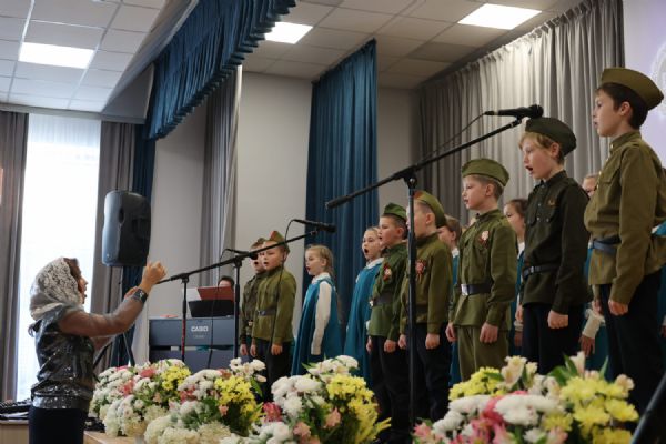 В фойе была оформлена выставка участников конкурсов детских рисунков «Красота Божьего мира» и «Великая Победа глазами детей». Гостей встречал оркестр народных инструментов «Корни» Детской школы искусств.