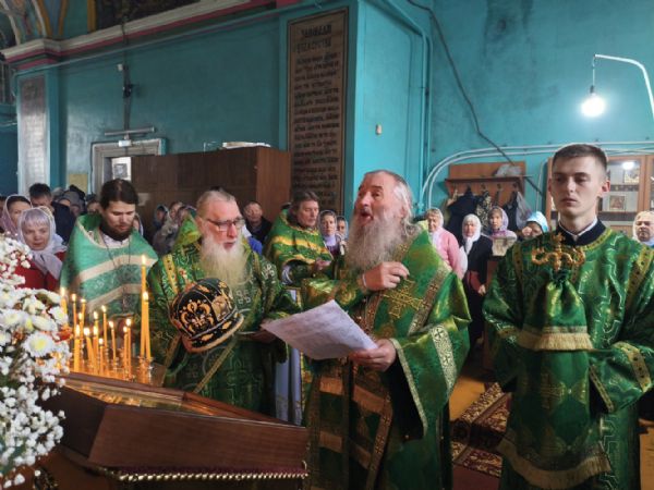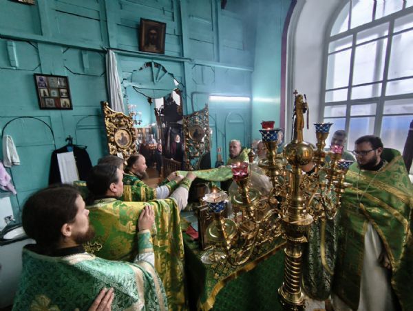 Архипастырю сослужили настоятель храма иерей Алексий Васюткин, духовенство Козьмодемьянского и Горномарийского благочиний, а также протодиакон Михаил Козловский. Песнопения исполнял хор храма.