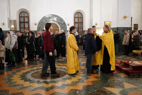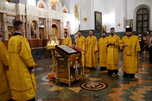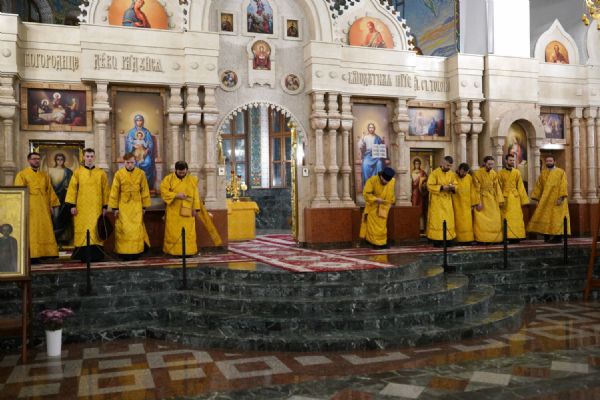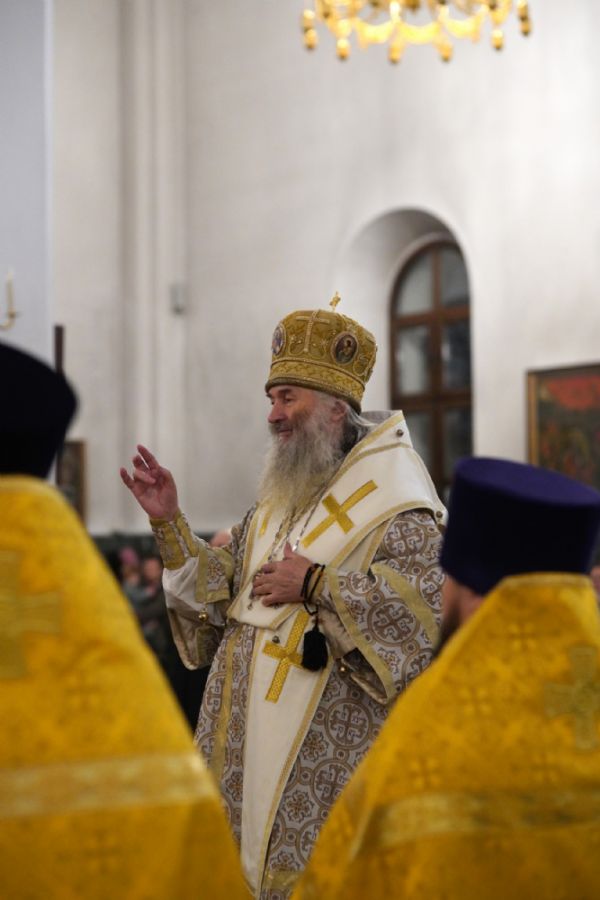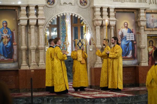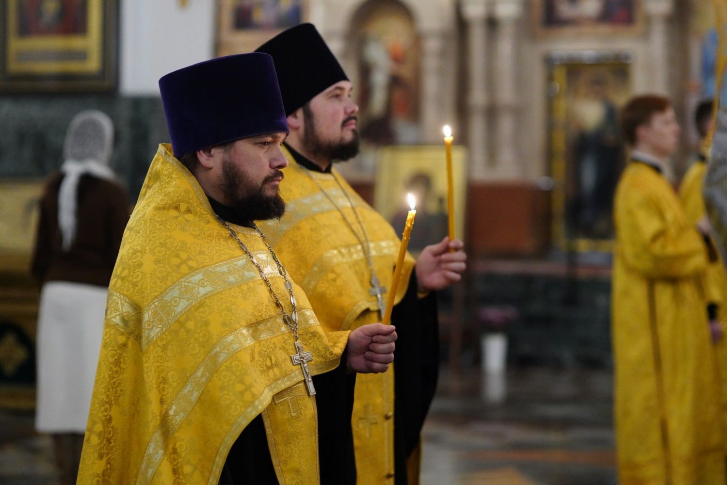 Его Высокопреосвященству сослужили ключарь собора протоиерей Сергий Поглазов, клирики собора иереи Никифор Захаров, Евгений Самойлов, Александр Староверов, Иоанн Милютин, диаконы Андрей Дружинин и Артемий Бобоч. Песнопения исполняли старший и младший составы архиерейского детско-юношеского хора «Благовест» под управлением регентов Надежды Поздеевой и Марии Мороз.