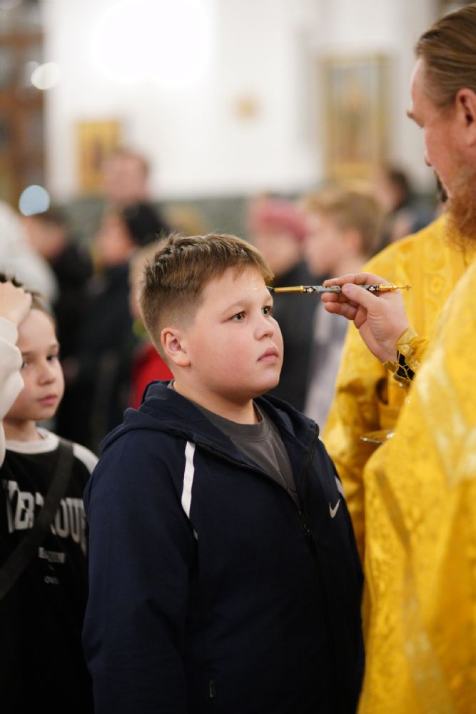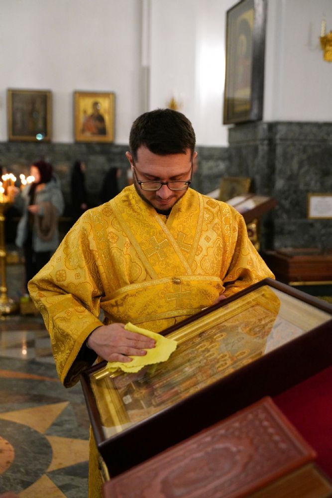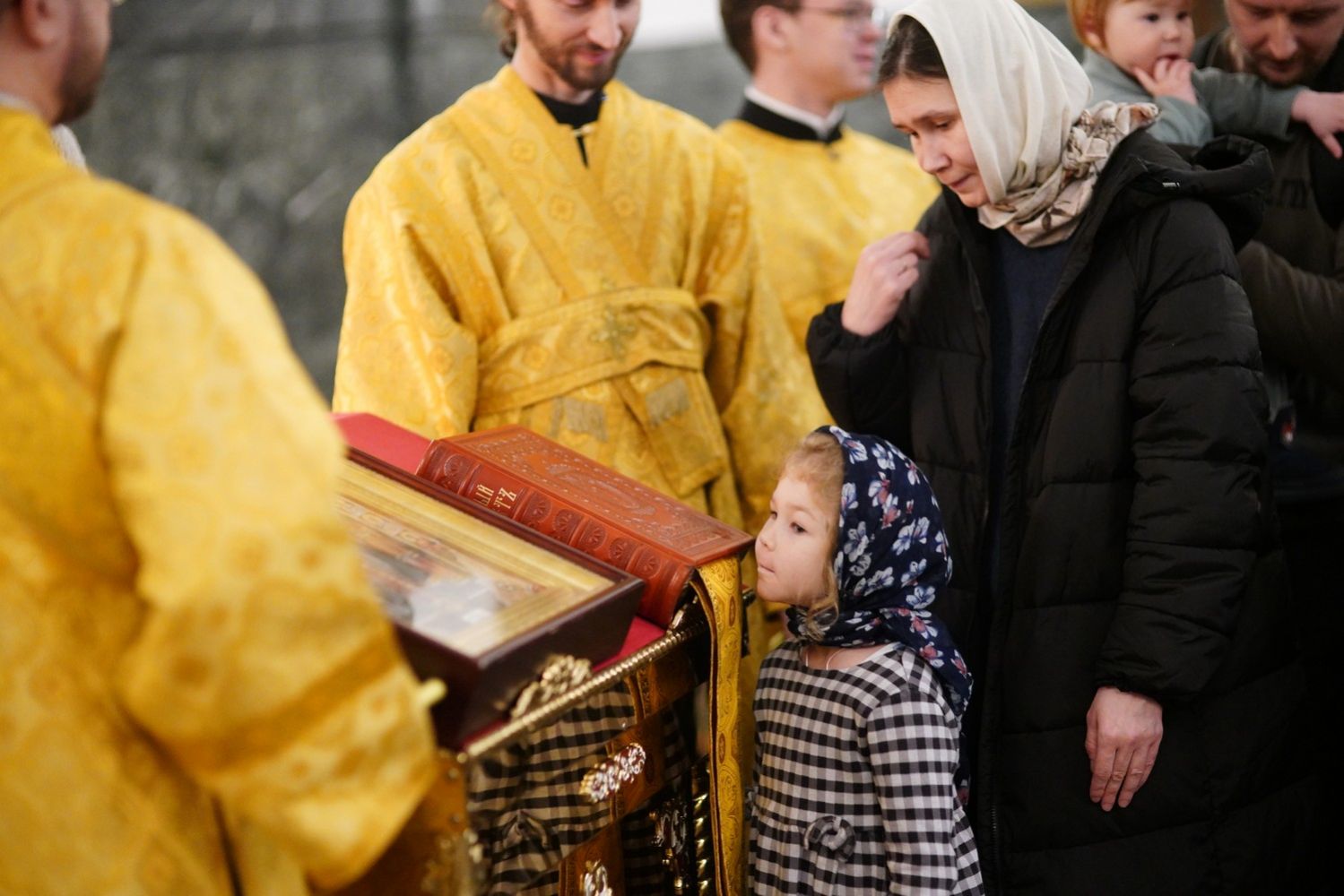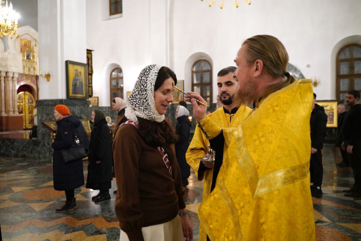 Его Высокопреосвященству сослужили ключарь собора протоиерей Сергий Поглазов, клирики собора иереи Никифор Захаров, Евгений Самойлов, Александр Староверов, Иоанн Милютин, диаконы Андрей Дружинин и Артемий Бобоч. Песнопения исполняли старший и младший составы архиерейского детско-юношеского хора «Благовест» под управлением регентов Надежды Поздеевой и Марии Мороз.