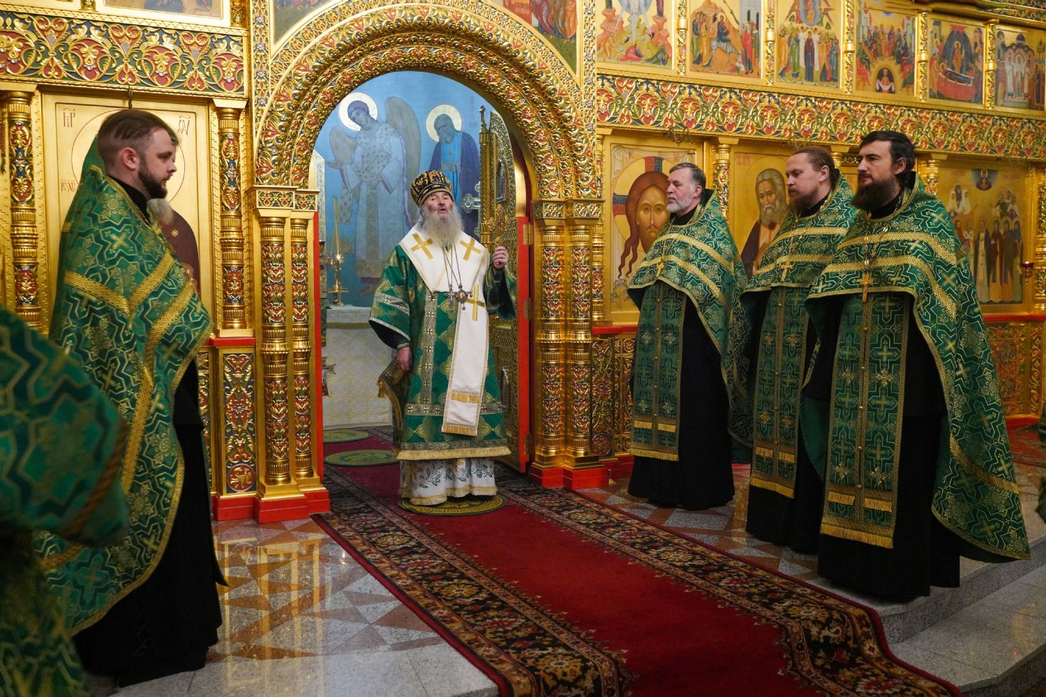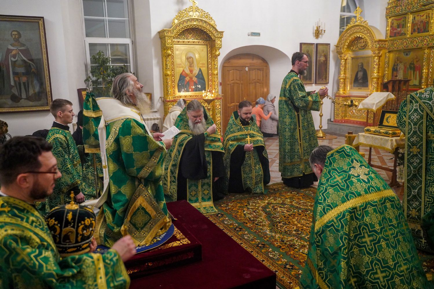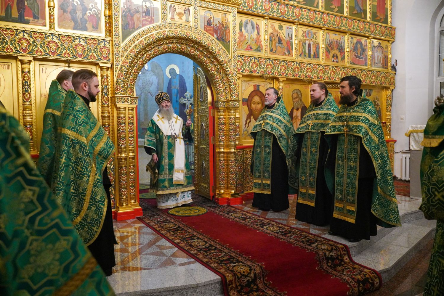 Владыке сослужили настоятель храма протоиерей Александр Бачурин, полковой священник иерей Георгий Колотов, клирики храма иереи Константин Домрачев, Виктор Умрихин, Николай Бабич и диакон Алексий Ершов, а также клирик Благовещенского кафедрального собора диакон Андрей Дружинин. Песнопения исполнял хор храма под управлением регента Елены Умрихиной.