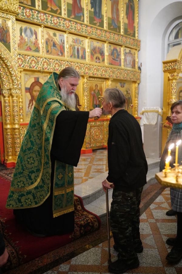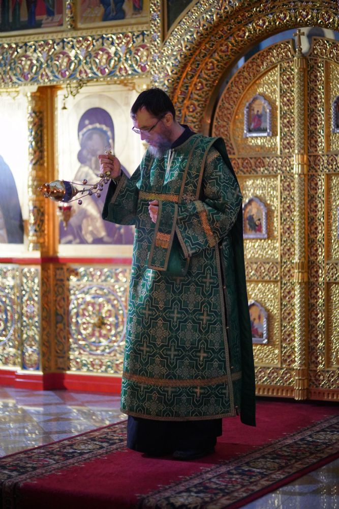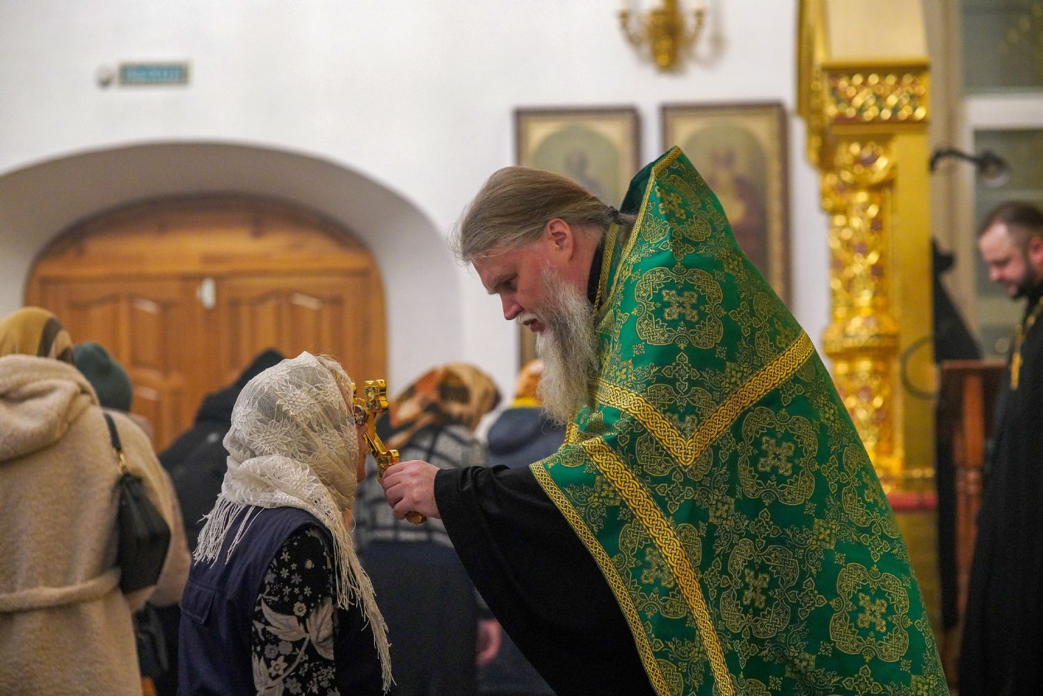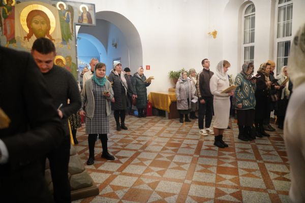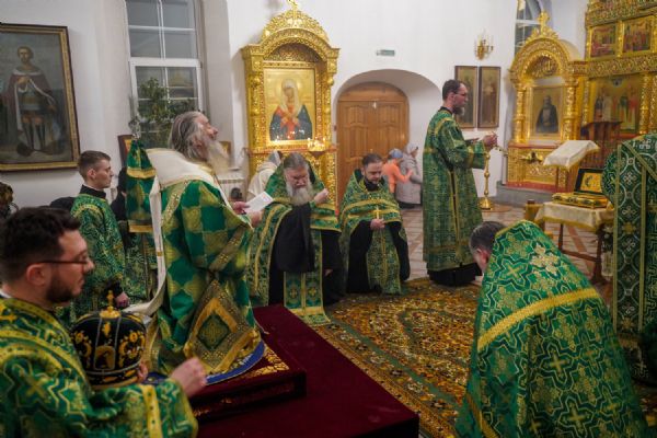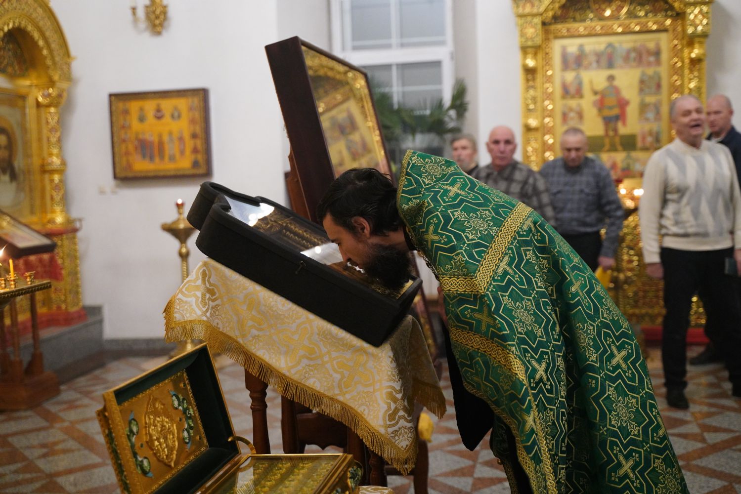 Владыке сослужили настоятель храма протоиерей Александр Бачурин, полковой священник иерей Георгий Колотов, клирики храма иереи Константин Домрачев, Виктор Умрихин, Николай Бабич и диакон Алексий Ершов, а также клирик Благовещенского кафедрального собора диакон Андрей Дружинин. Песнопения исполнял хор храма под управлением регента Елены Умрихиной.