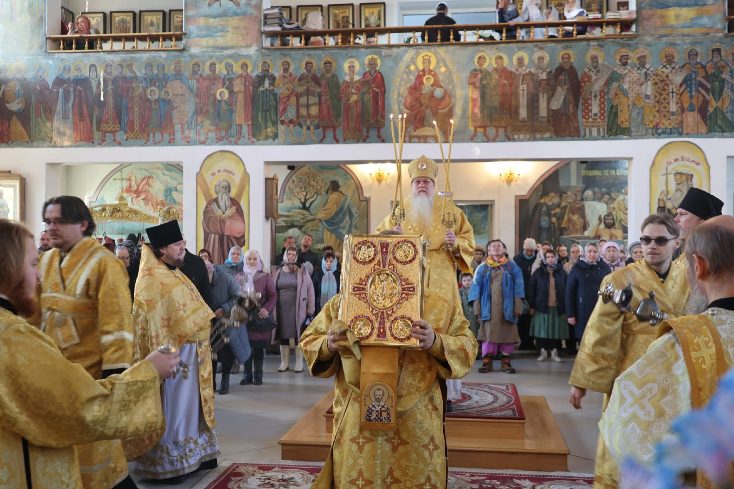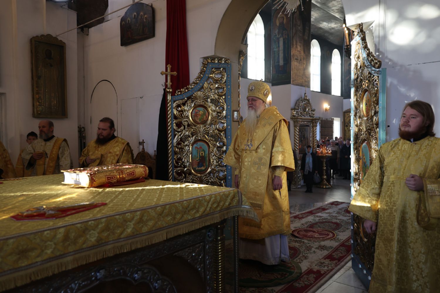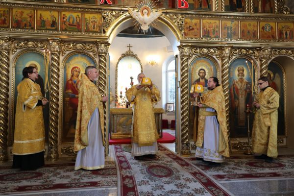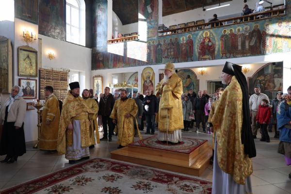 Архипастырю сослужили клирики собора иерей Николай Аникин, иеромонах Александр (Чеборов), диакон Иоанн Захаров, диакон Александр Викторов и иеродиакон Питирим (Мосякин). Песнопения исполнял народный хор под управлением Евгения Чигарова.