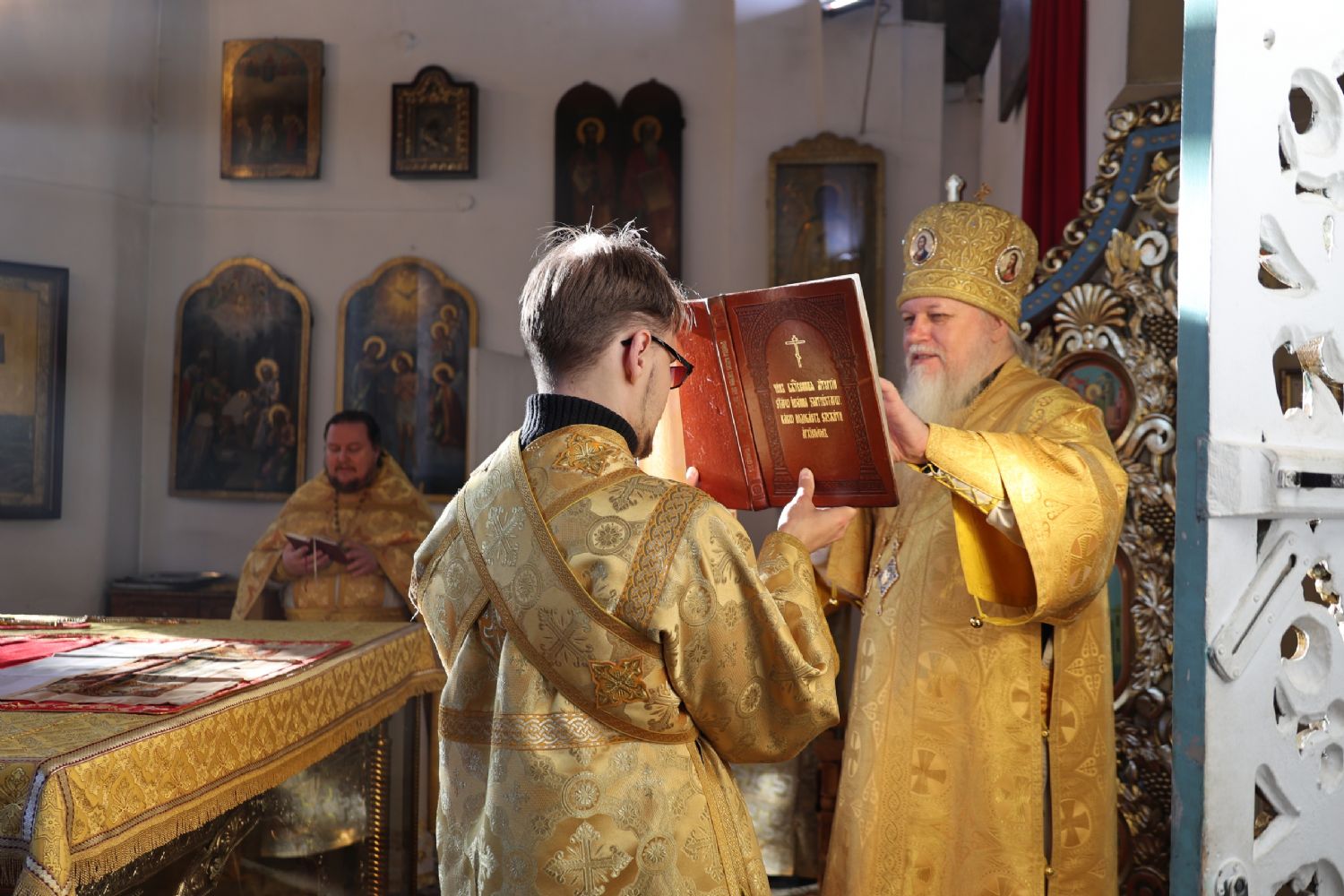 Во время богослужения алтарник кафедрального собора Алексей Петров получил благословение на ношение священной одежды – стихаря.