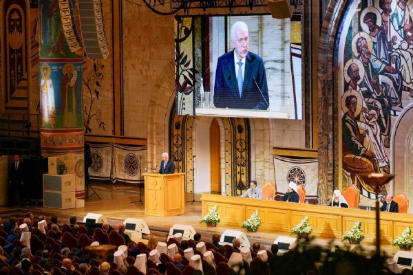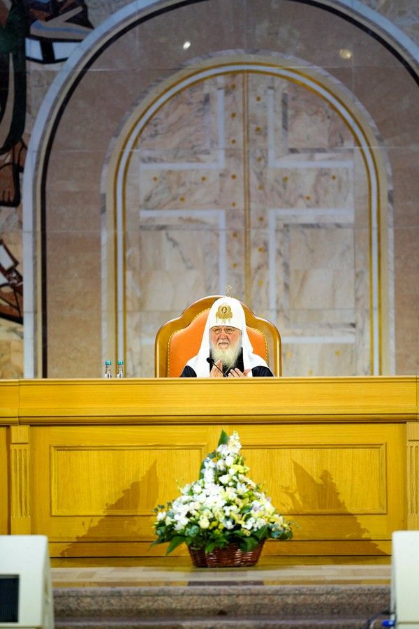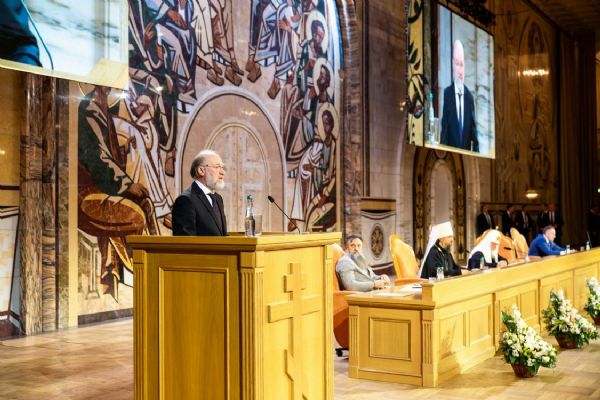 Предстоятель Русской Православной Церкви выступил с основным докладом.