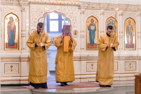 Были вознесены особые благодарственные прошения и молитва в честь 79-летия Святейшего Патриарха Кирилла. В завершение было пропето многолетие Святейшему Патриарху Кириллу.