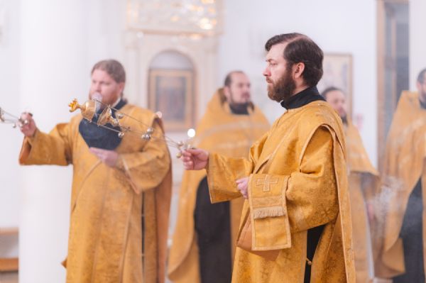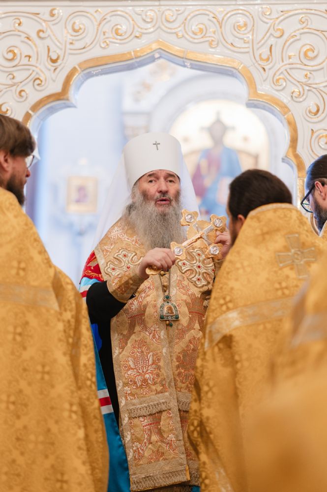 Владыке сослужили секретарь Йошкар-Олинского епархиального управления иерей Димитрий Дьяков, ключарь кафедрального собора протоиерей Сергий Поглазов, клирики собора иереи Никифор Захаров, Евгений Самойлов и Александр Староверов, диаконы Андрей Дружинин и Артемий Бобоч. Песнопения исполнял архиерейский хор «Благовест» под управлением регента Татьяны Черновой.