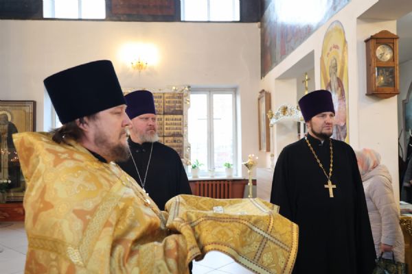Его Преосвященству сослужили клирики собора иерей Николай Аникин, иерей Сергий Першаков, иеромонах Александр (Чеботов), иерей Виталий Ульянов и диакон Иоанн Захаров. Песнопения исполнял народный хор под управлением Евгения Чигарова.