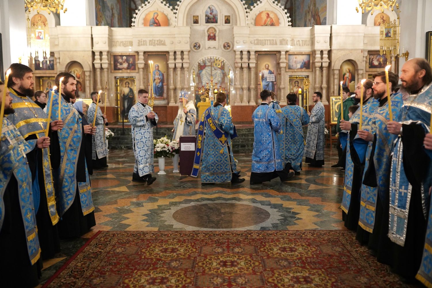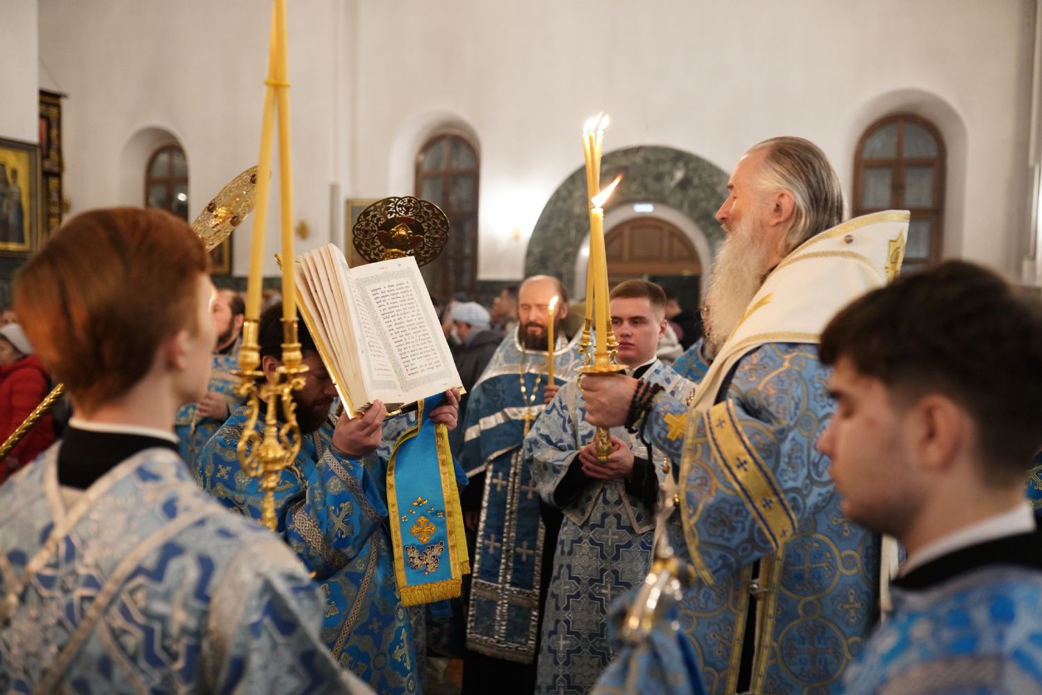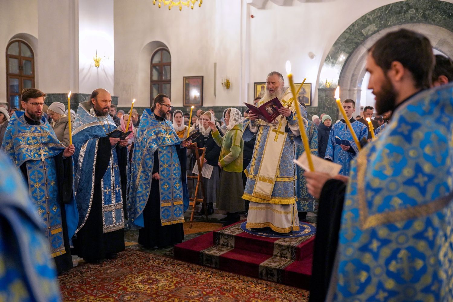 Его Высокопреосвященству сослужили секретарь Йошкар-Олинского епархиального управления иерей Димитрий Дьяков, ключарь кафедрального собора протоиерей Сергий Поглазов, настоятель Покровского храма с. Марисола протоиерей Сергий Сильдушкин, руководитель молодежного отдела Йошкар-Олинской епархии иерей Никита Иванов, а также клирики кафедрального собора иереи Никифор Захаров, Евгений Самойлов, Александр Староверов, Иоанн Милютин, диаконы Андрей Дружинин и Артемий Бобоч. Песнопения исполнял детско-юношеский хор «Благовест» под управлением Татьяны Черновой.