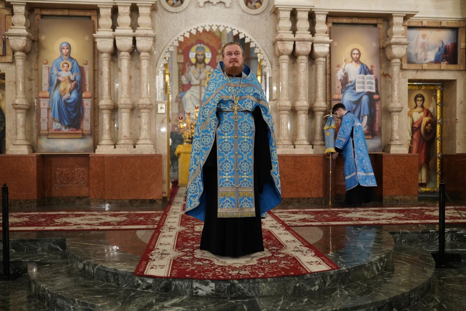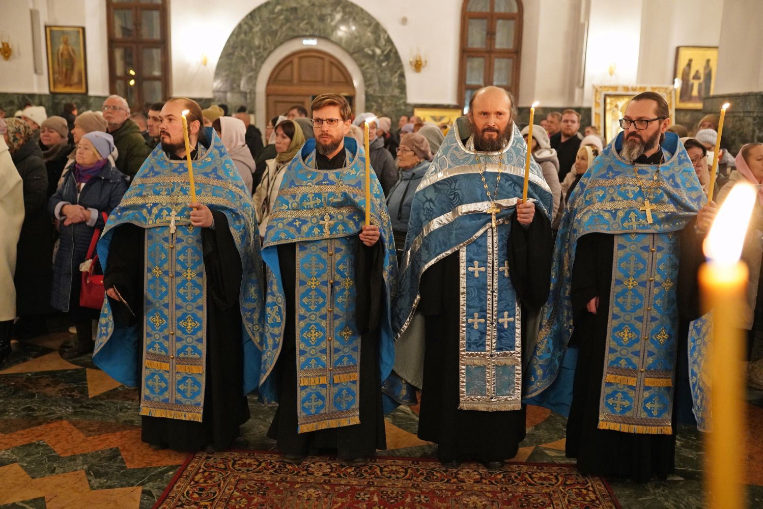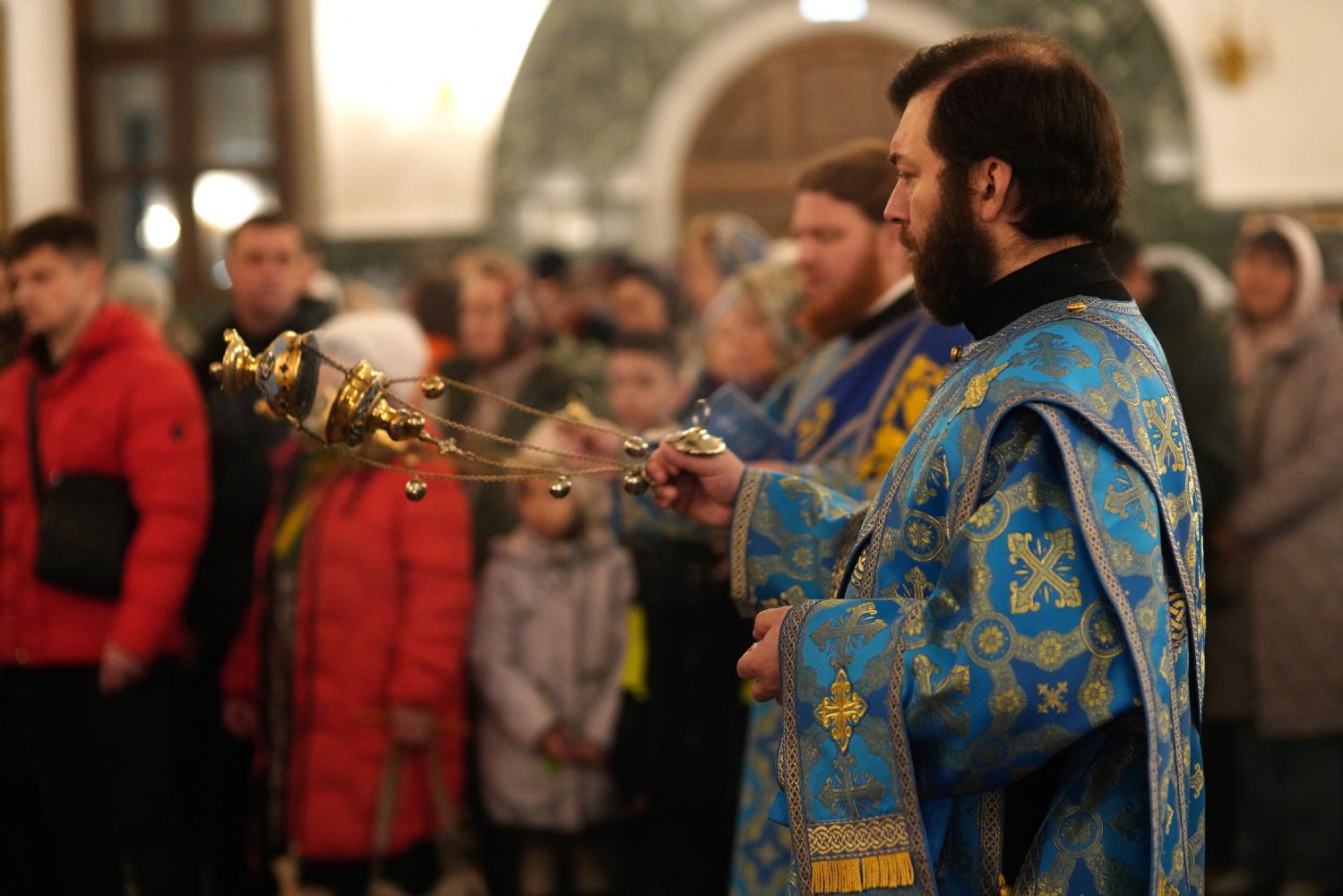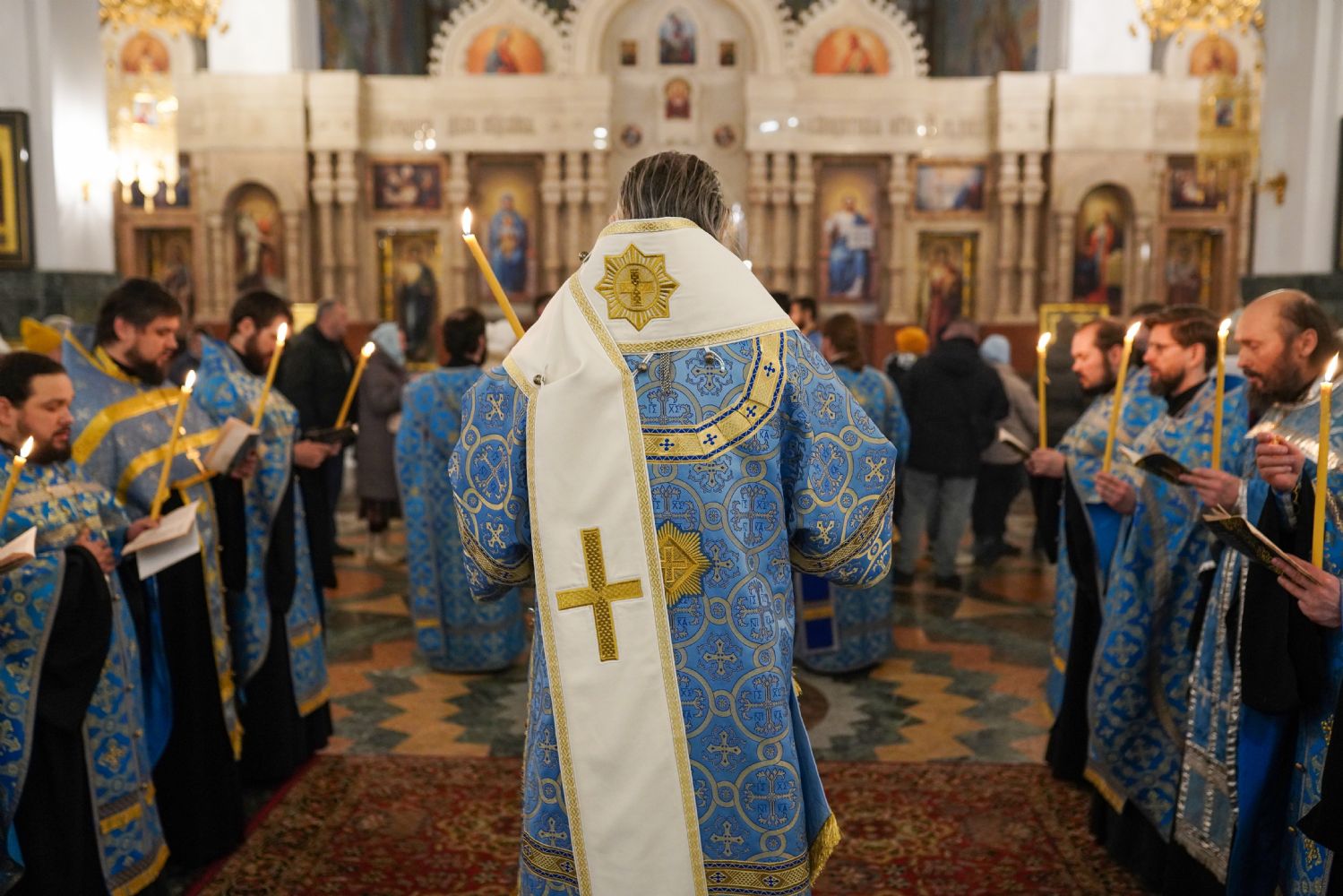 Его Высокопреосвященству сослужили секретарь Йошкар-Олинского епархиального управления иерей Димитрий Дьяков, ключарь кафедрального собора протоиерей Сергий Поглазов, настоятель Покровского храма с. Марисола протоиерей Сергий Сильдушкин, руководитель молодежного отдела Йошкар-Олинской епархии иерей Никита Иванов, а также клирики кафедрального собора иереи Никифор Захаров, Евгений Самойлов, Александр Староверов, Иоанн Милютин, диаконы Андрей Дружинин и Артемий Бобоч. Песнопения исполнял детско-юношеский хор «Благовест» под управлением Татьяны Черновой.