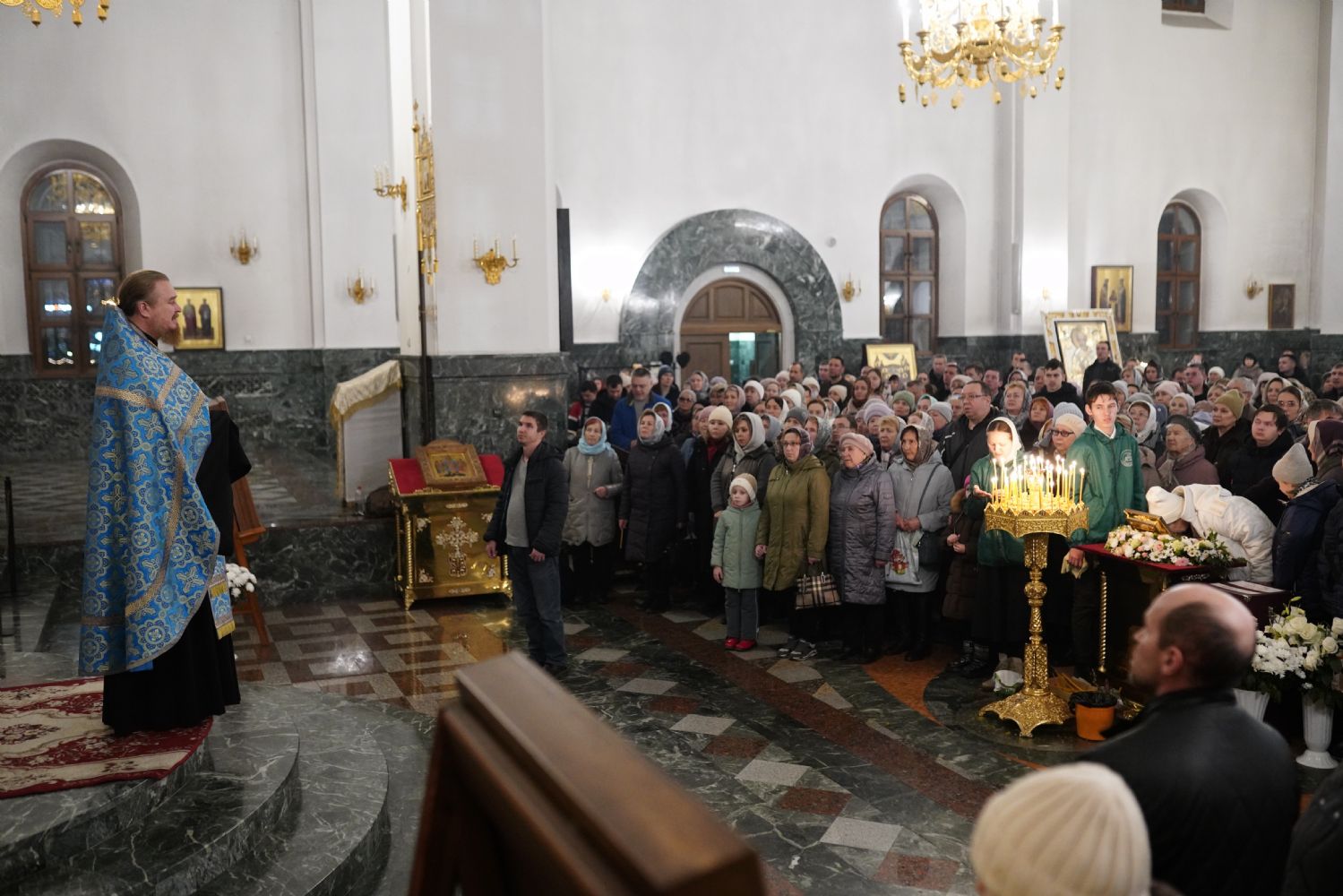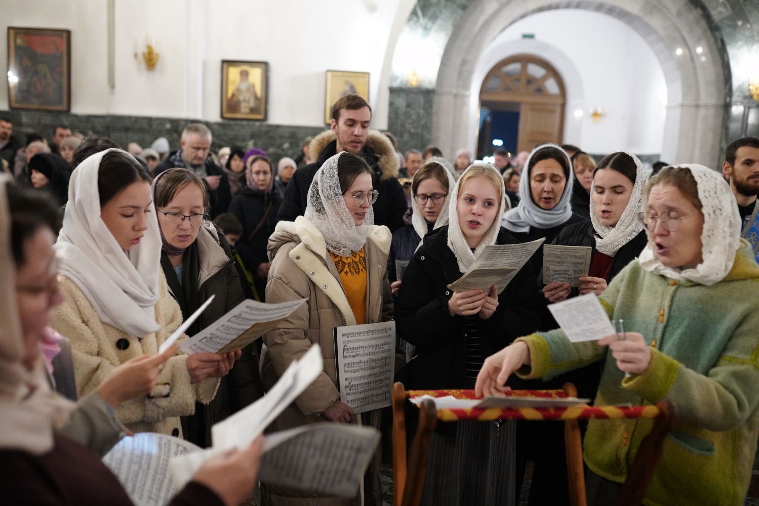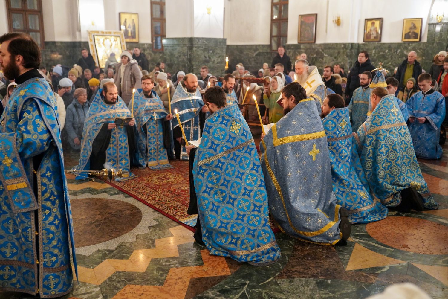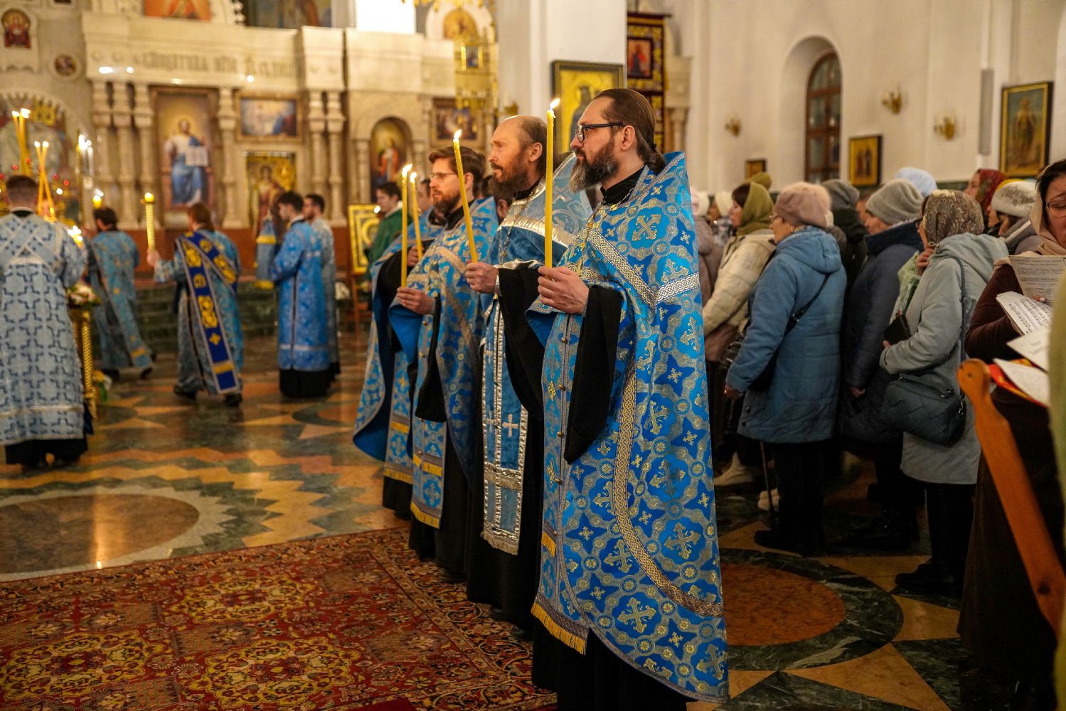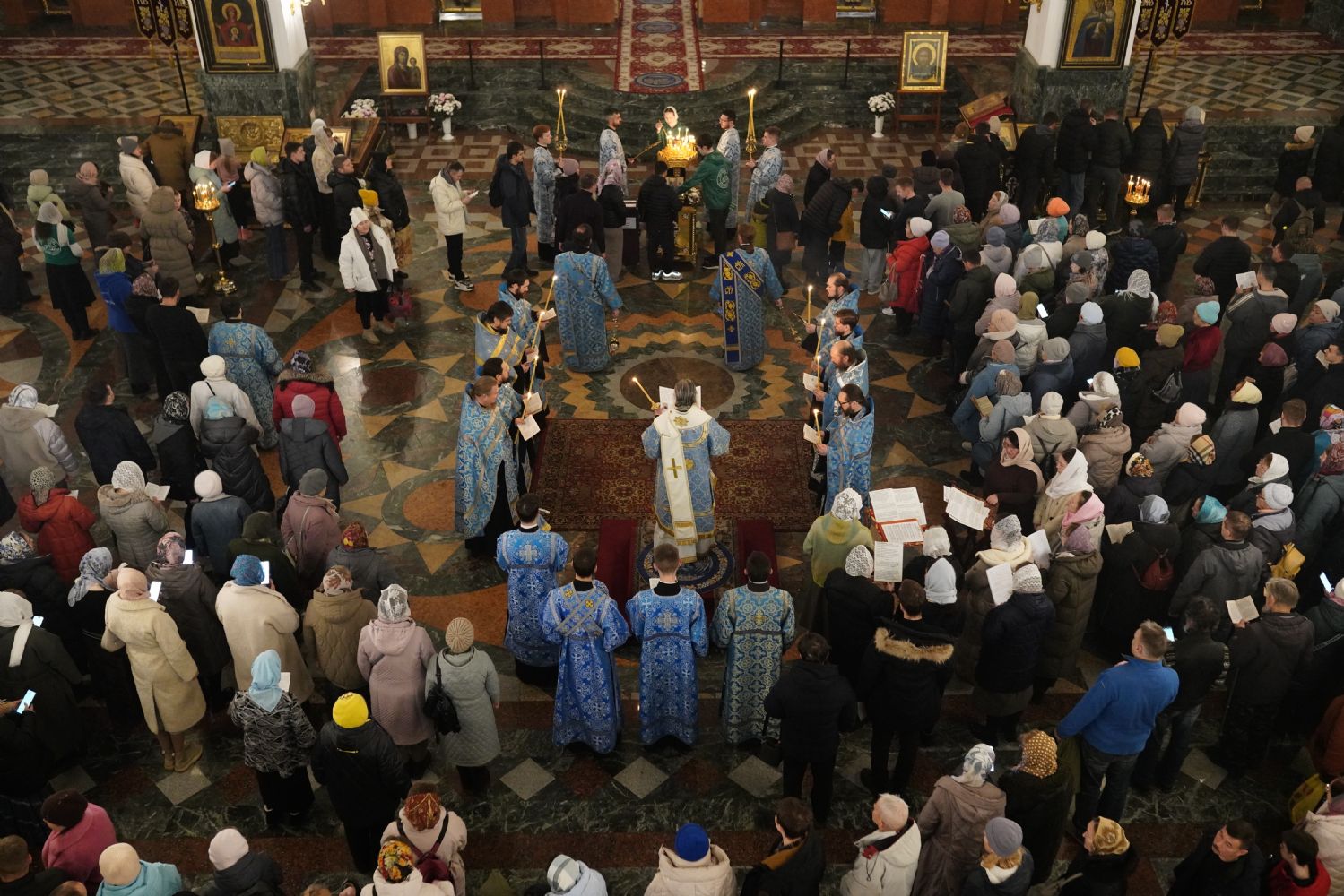 Традиционно, акафист, прославляя Пресвятую Богородицу, вместе со священством и хором пели все прихожане.