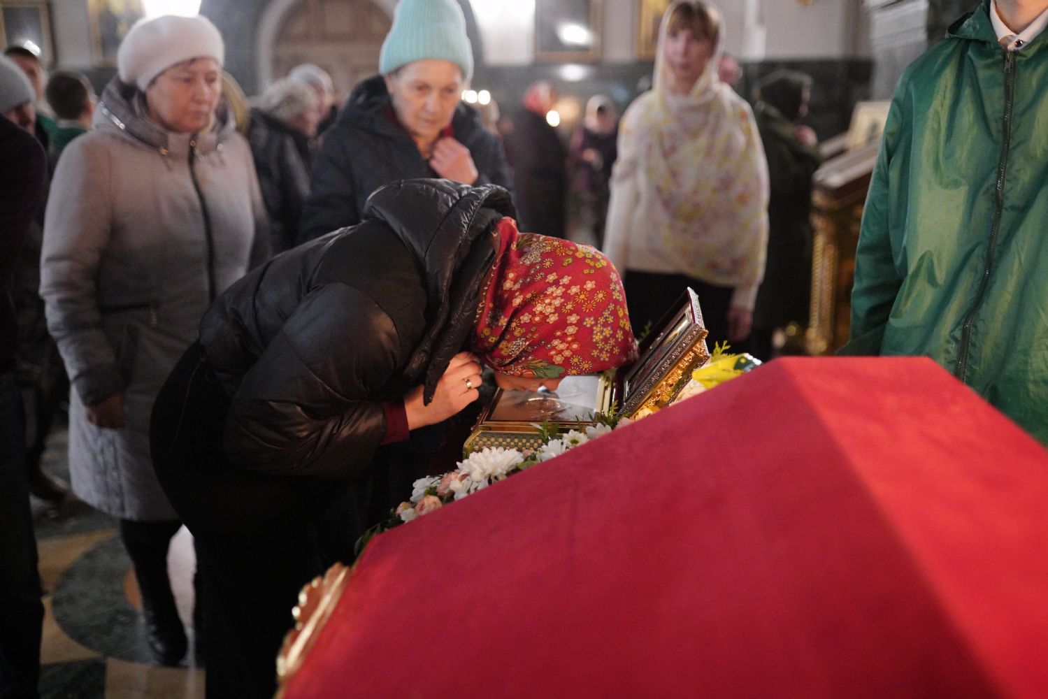 После службы верующие продолжали прикладываться к ковчегу. Затем святыню унесли в алтарь, а наутро отправили дальше по стране.