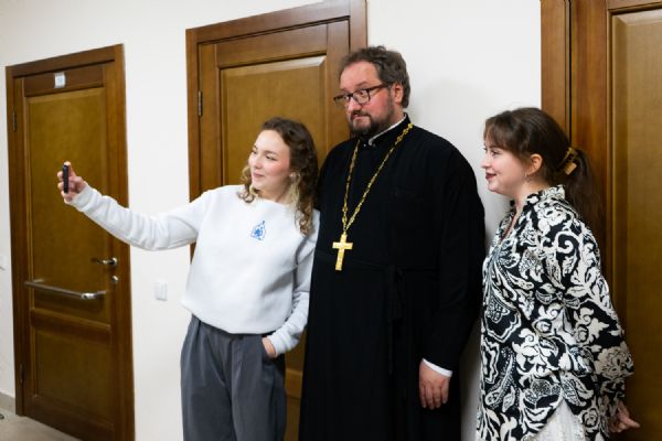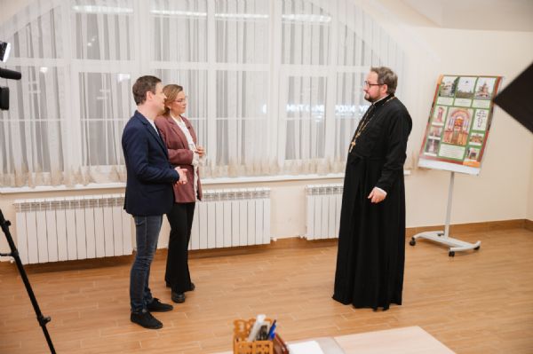 Далее гость в сопровождении священнослужителей епархии прогулялся по набережной реки Малая Кокшага, полюбовавшись храмовой архитектурой, а в воскресной школе Воскресенского собора его уже ждала съемочная группа программы «Утро на МЭТРе».