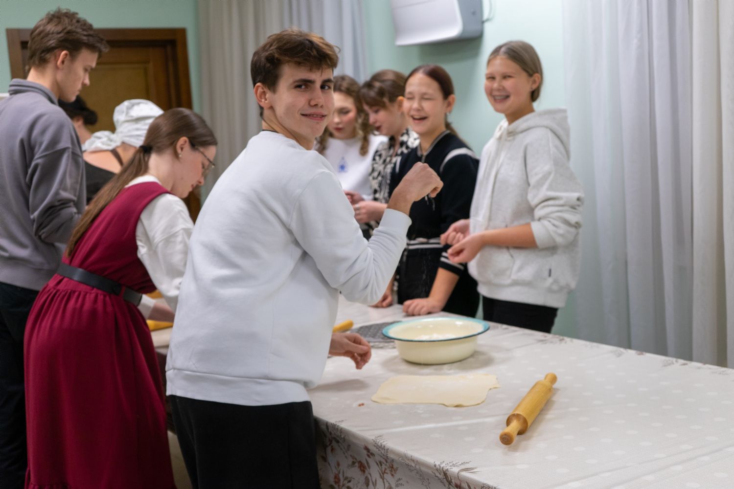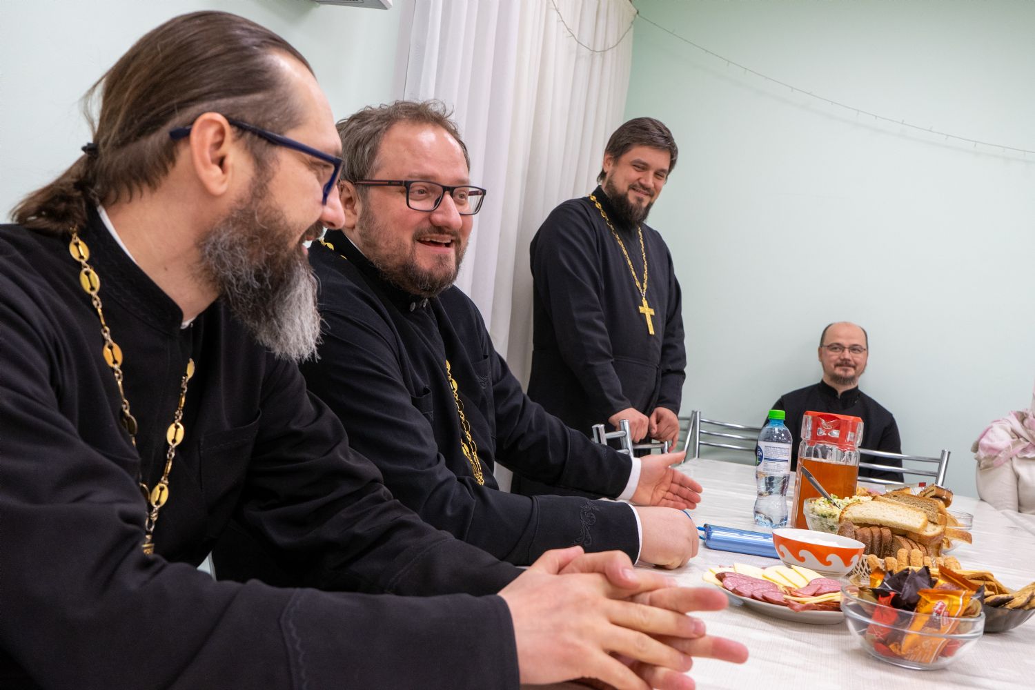 Вечером отец Владислав Береговой встретился с православной молодежью Йошкар-Олы, пообщавшись с молодыми людьми в неформальной обстановке на «Пельменнике» в трапезной храма иконы Божией Матери «Всех скорбящих Радость».