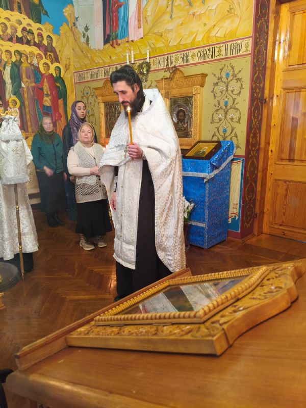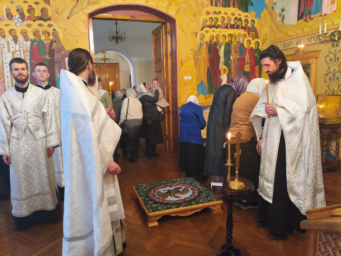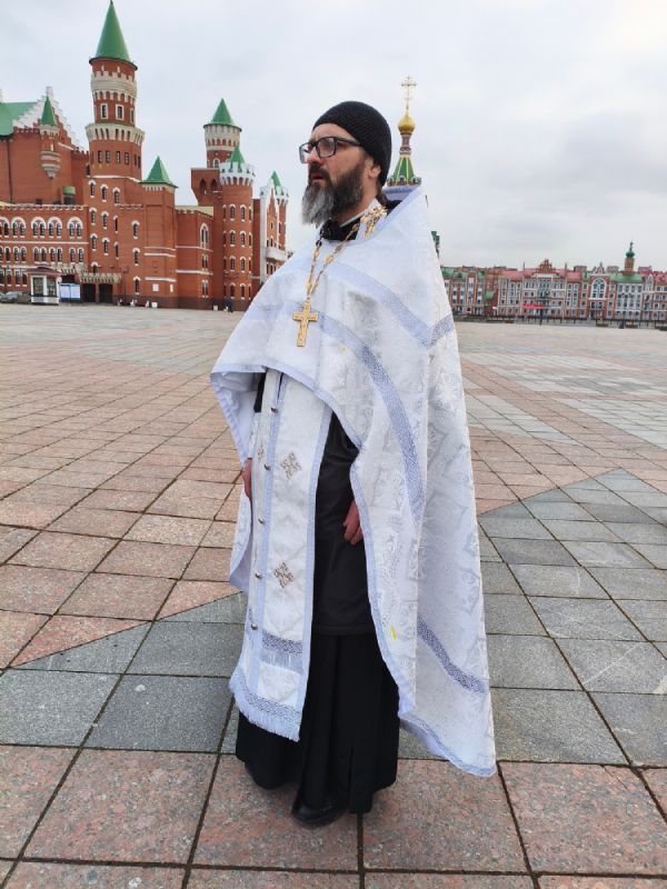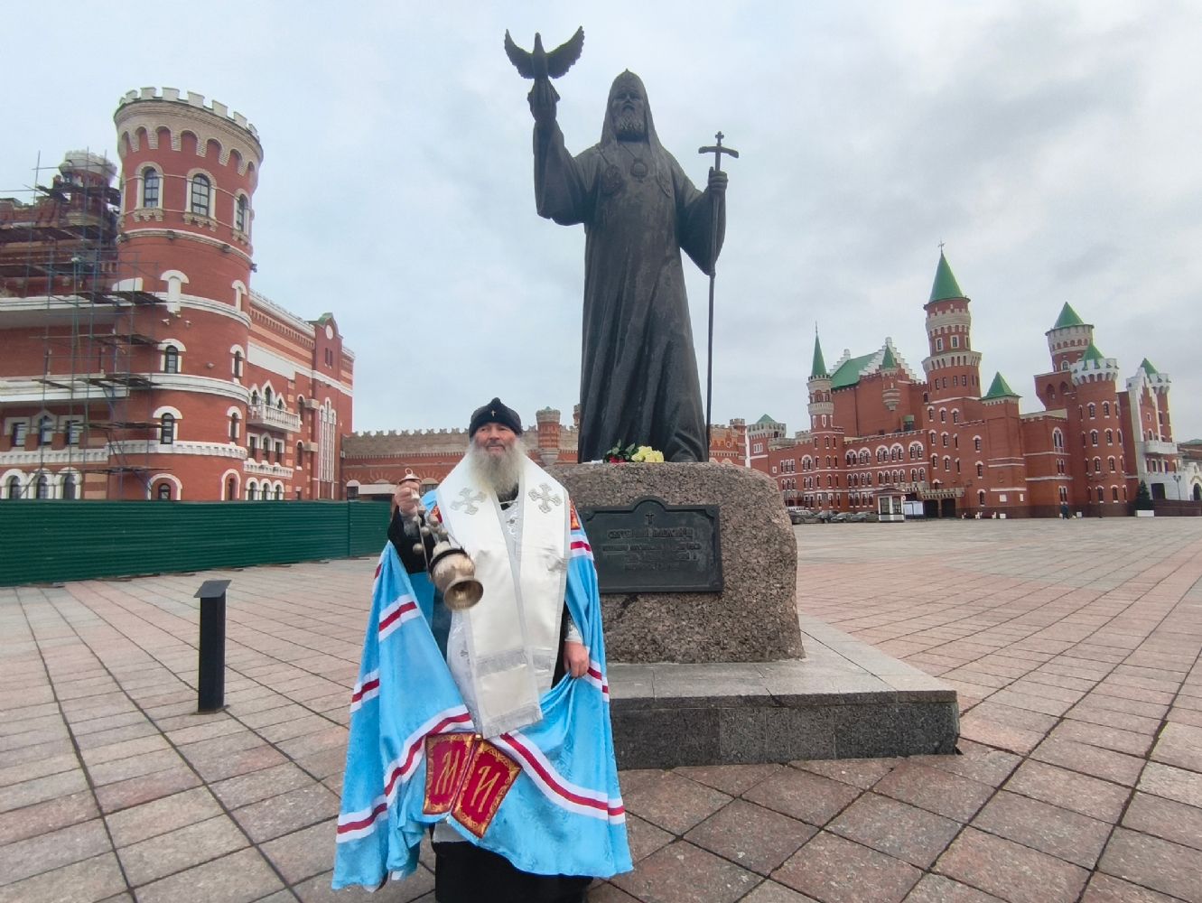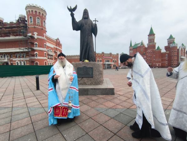 Владыке сослужили секретарь Йошкар-Олинского епархиального управления иерей Димитрий Дьяков, клирик храма иконы Богородицы «Всех скорбящих Радость» иерей Василий Пряморуков и протодиакон Михаил Козловский. Песнопения исполнял детско-юношеский хор «Благовест» под управлением Татьяны Черновой.